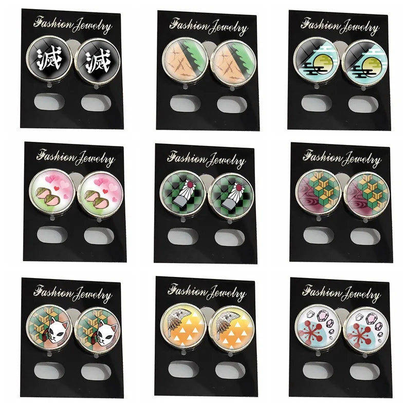 Anime Glass Earrings Tanjiro Nezuko Earrings For Women Men Cosplay Jewelry Accessories Gift