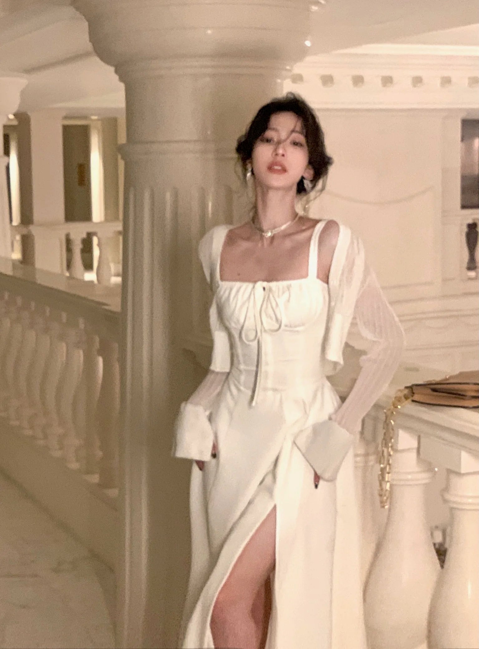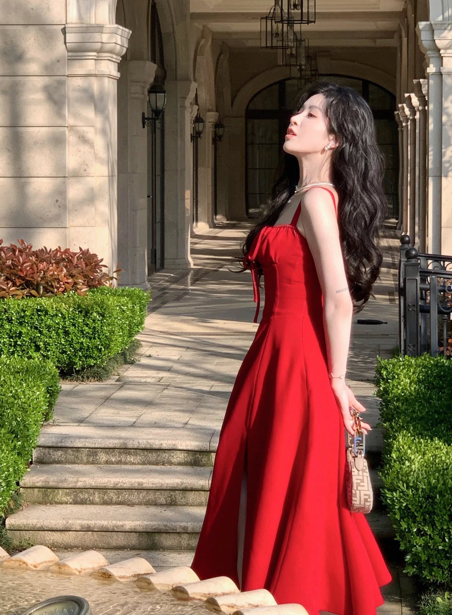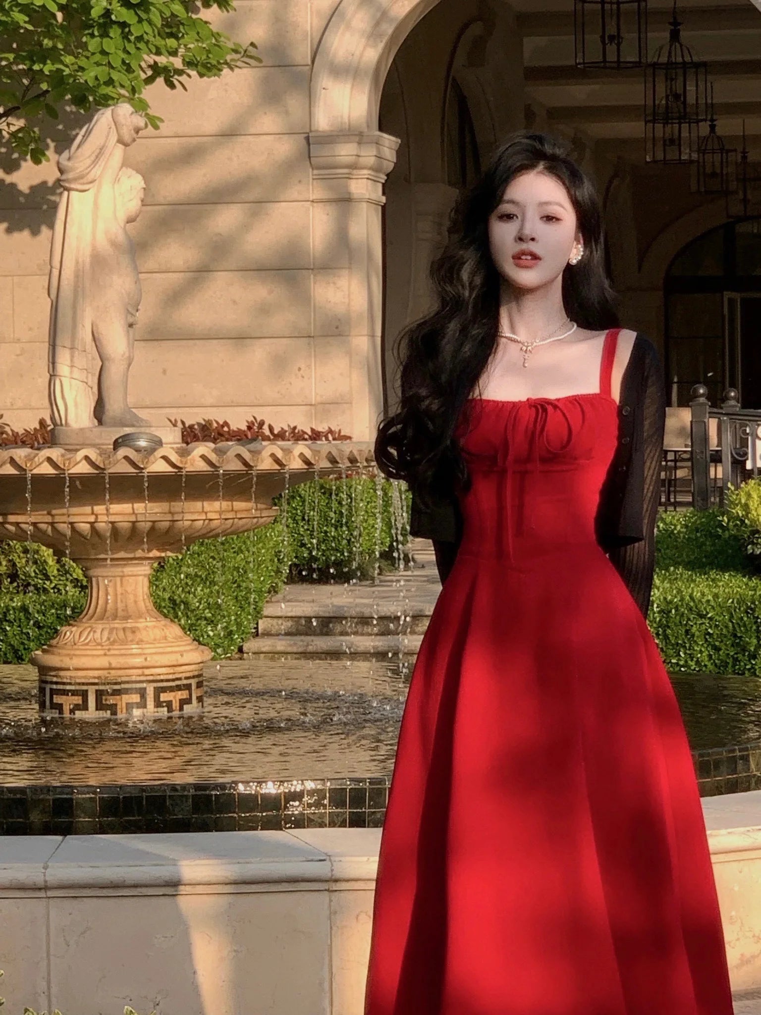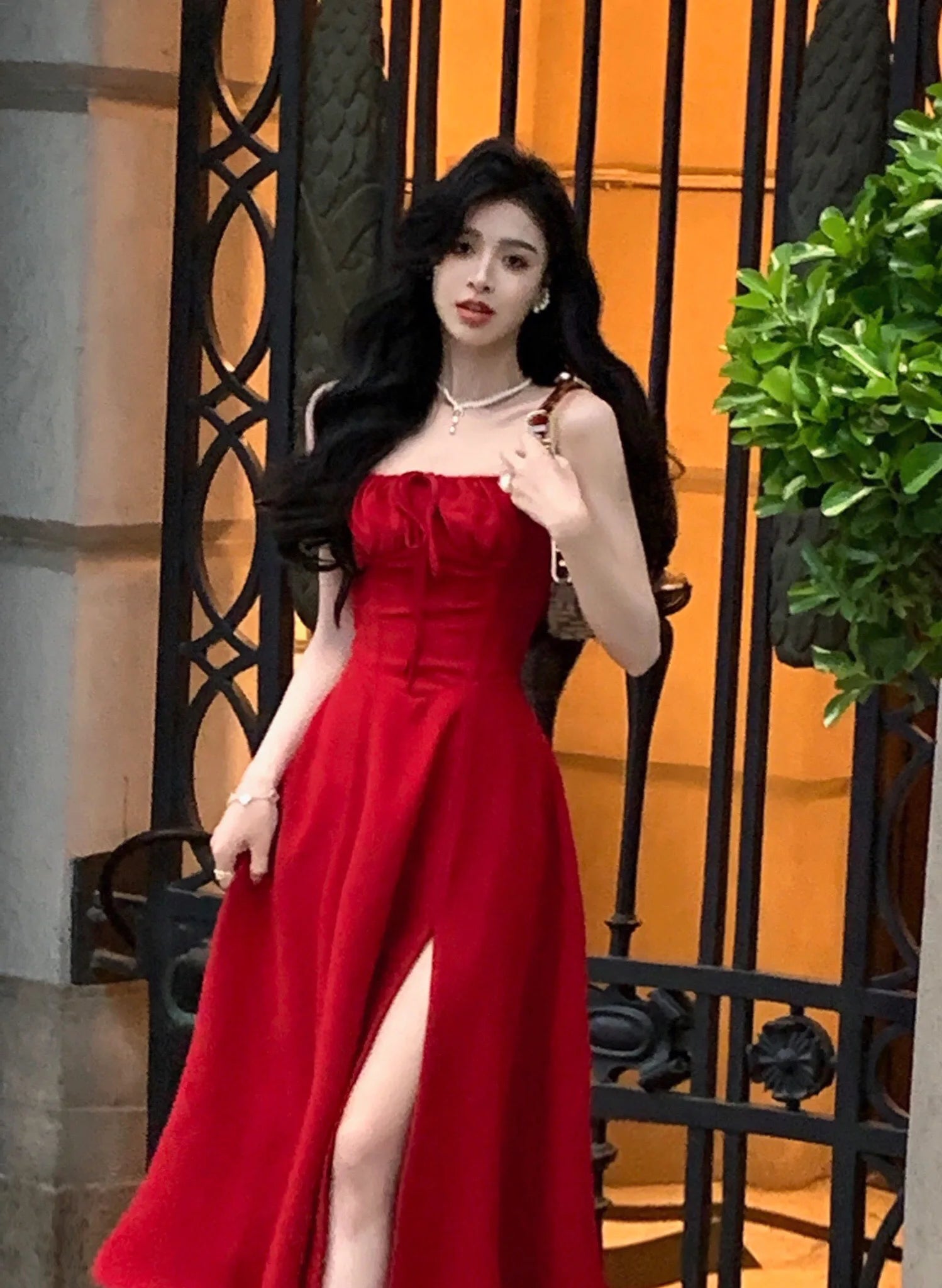 French Elegant White Strap Midi Dress 2023 Summer New Casual Evening Party Dress Women Beach Sleeveless Lace-up Red Dress Korean
