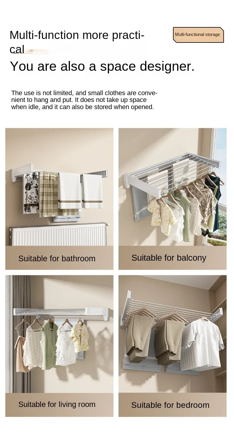 Invisible Towel Rack for Bathroom and Balcony - Foldable, Wall-Mounted, Retractable Drying Rack for Indoor Use