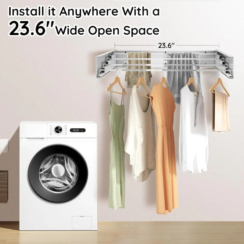 Laundry Drying Rack Collapsible,Wall Mounted Clothes Drying Rack Foldable,Indoor Drying Rack Clothing- 23.6" Wide 4 Aluminum