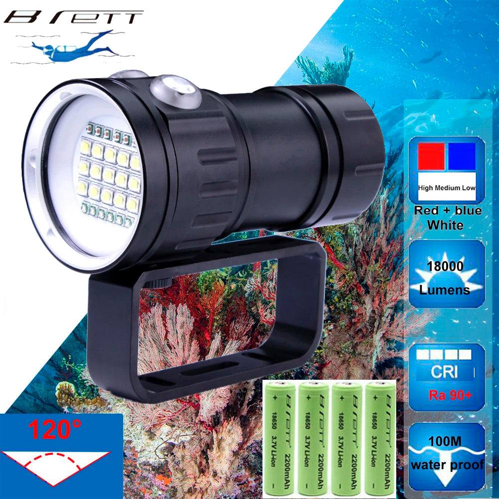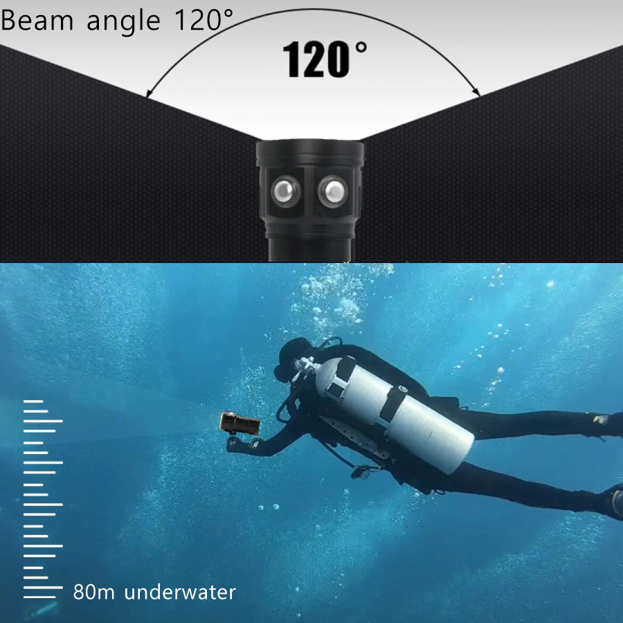 LED Diving Flashlight 20000Lumens 6 x XHP70 Underwater Lighting 100m Waterproof Tactical Torch For Photography Video Fill Light