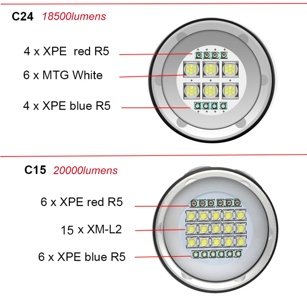 LED Diving Light 20000Lumens 15*L2 LED Flashlight Underwater 100m Waterproof Tactical Torch FOR Camera Video Fill Light