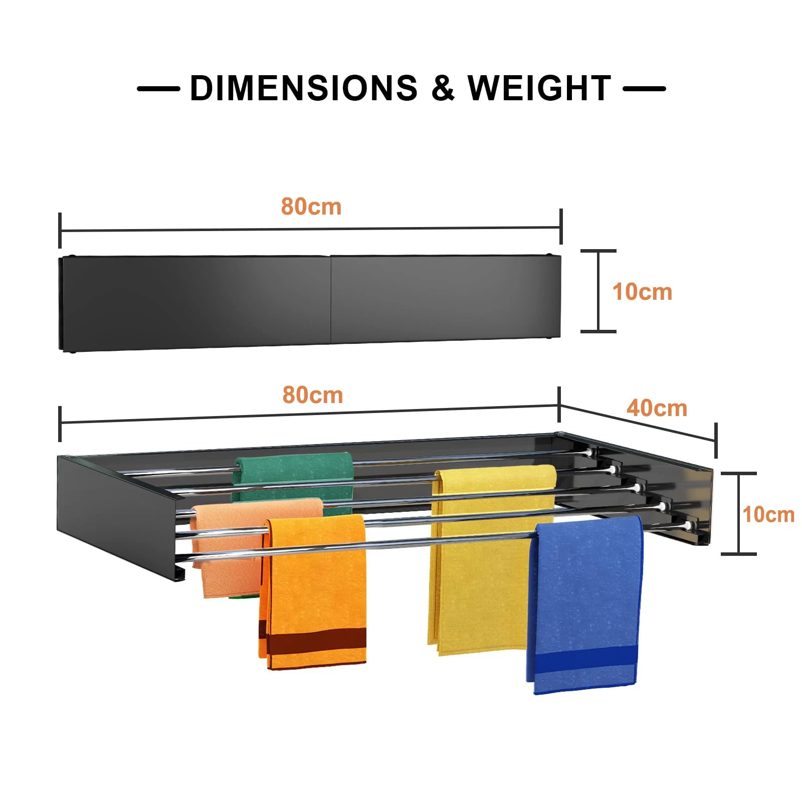 Stainless Steel Laundry Drying Rack, Collapsible Wall Mounted, Space Saving, Clothes Drying Rack, Foldable, 80cm