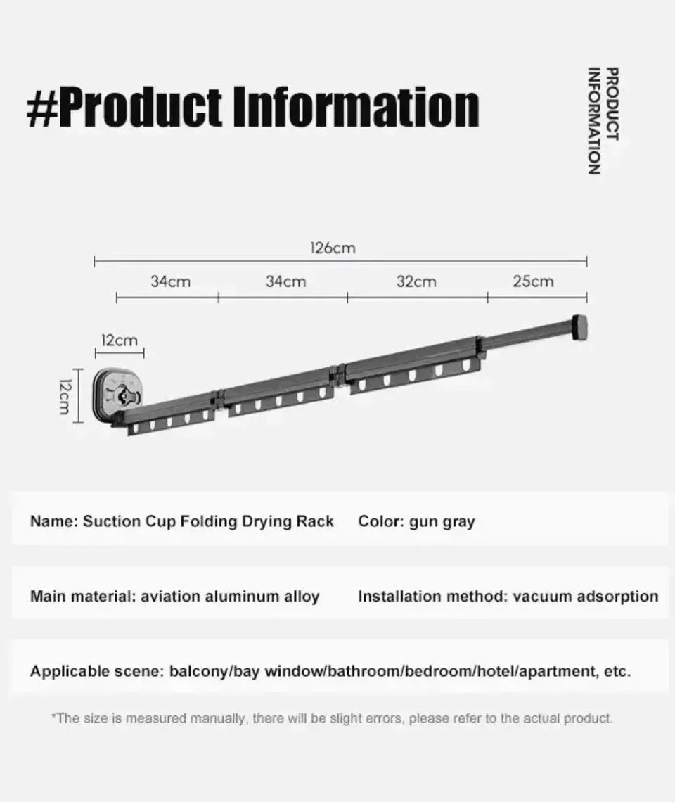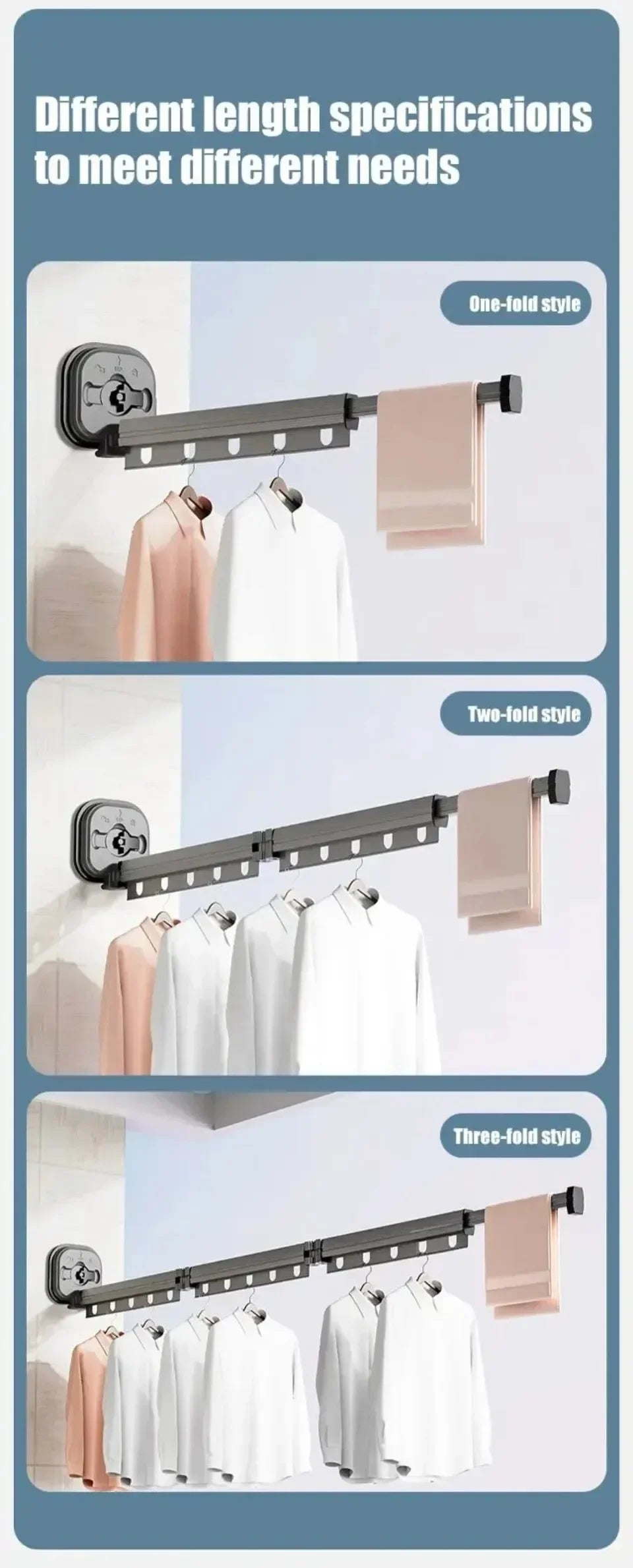 Wall Mounted Retractable Drying Rack Suctions Cup No Punching Aluminum Alloy Folding Drying Rack Clothes Dryer Invisible Hang