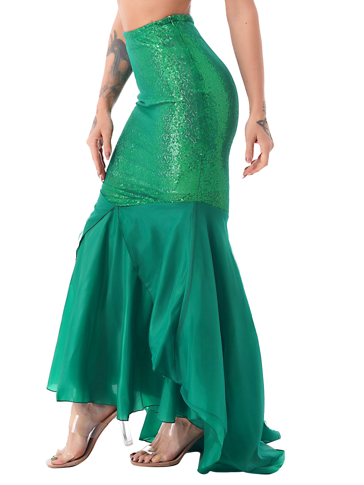 Women Ladies Shiny Sequined Mermaid Tail Skirt Party Photography Cosplay Costume Long Mermaid Tail Halloween Theme Party Dress