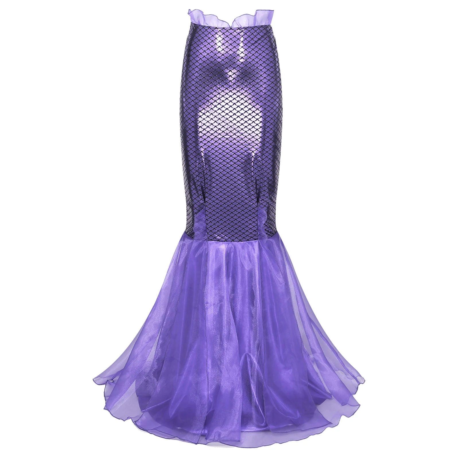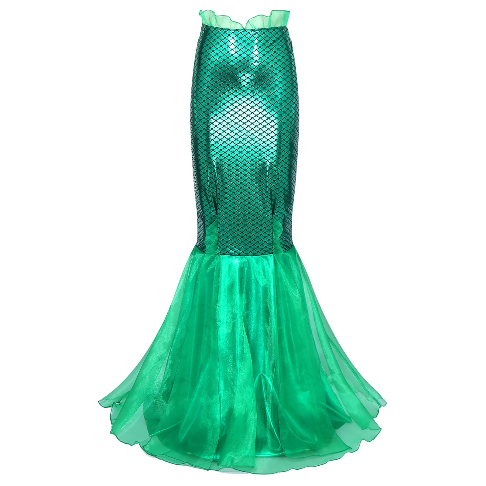 Metallic Shiny Fishtail Skirt for Cosplay Dress-Up Party: Cascading Tulle Fish Scale Print Loong Skirts