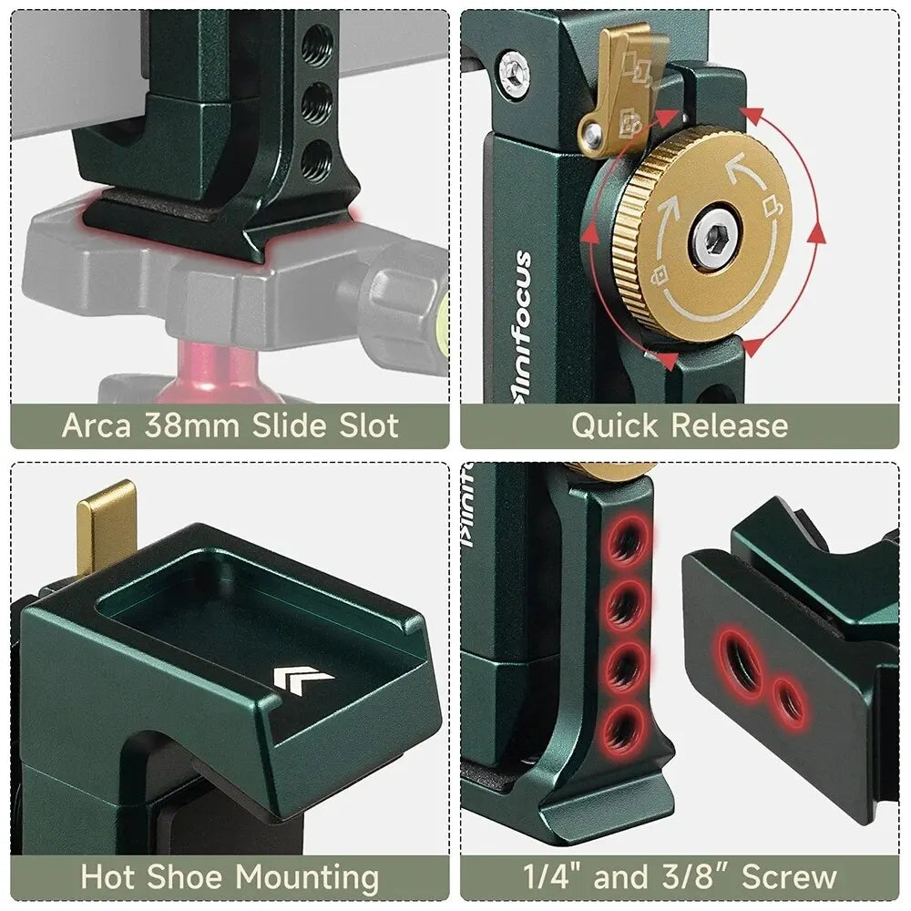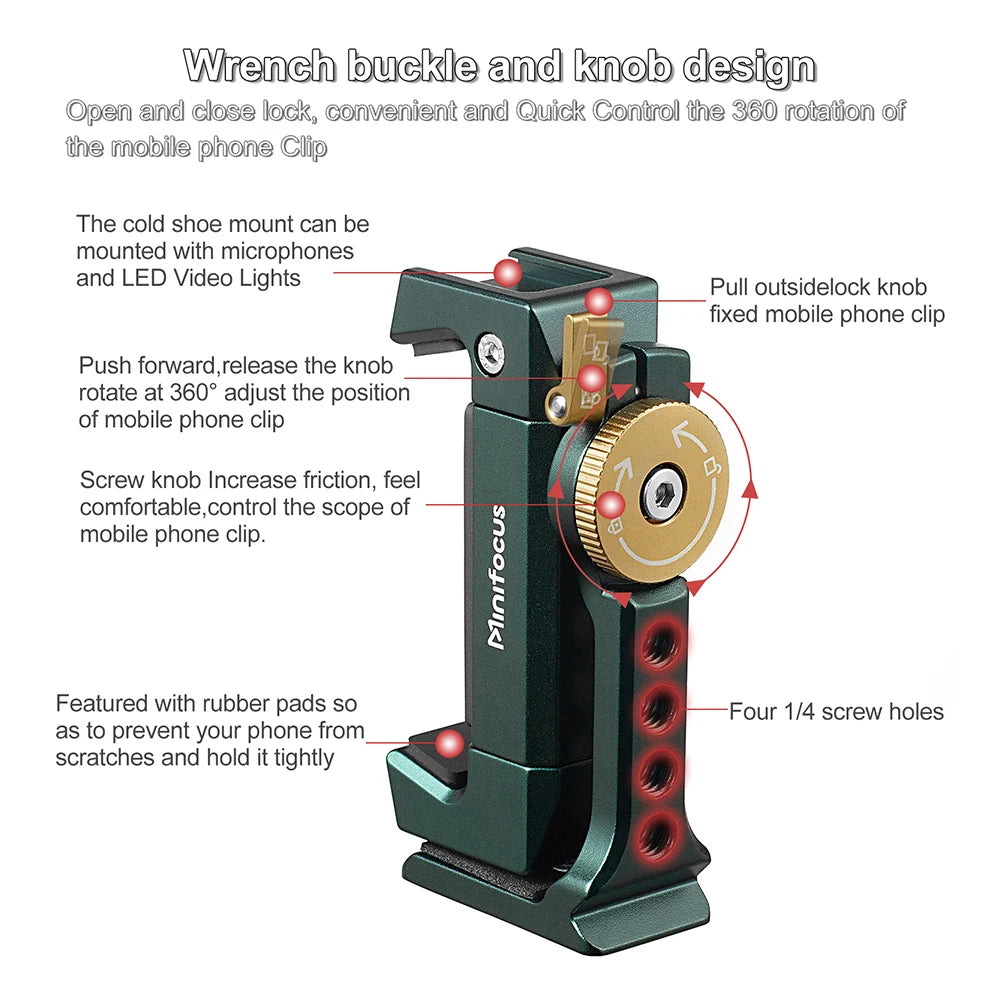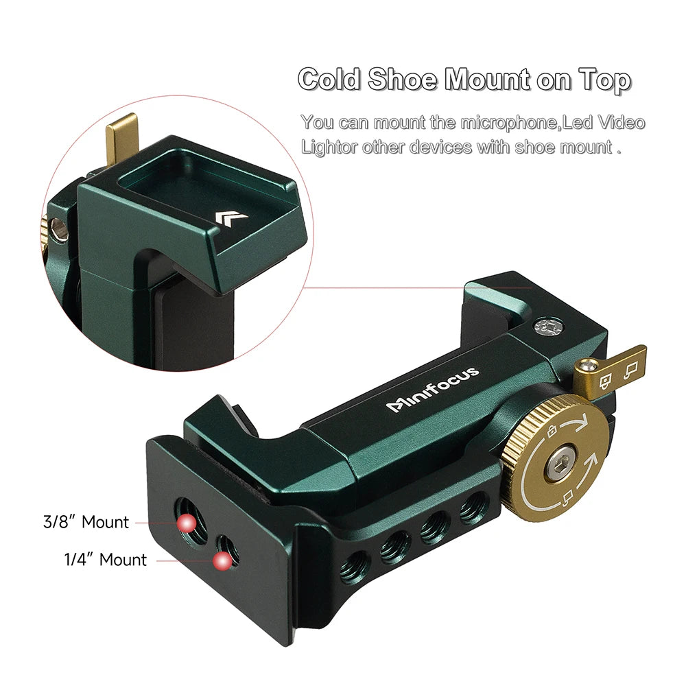 Metal Phone Holder Clamp With Cold Shoe Arca 360°Rotatable Tripod Mount Clip for TikTok Vlog Smartphone Video Photography