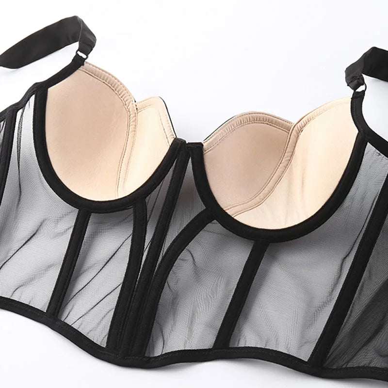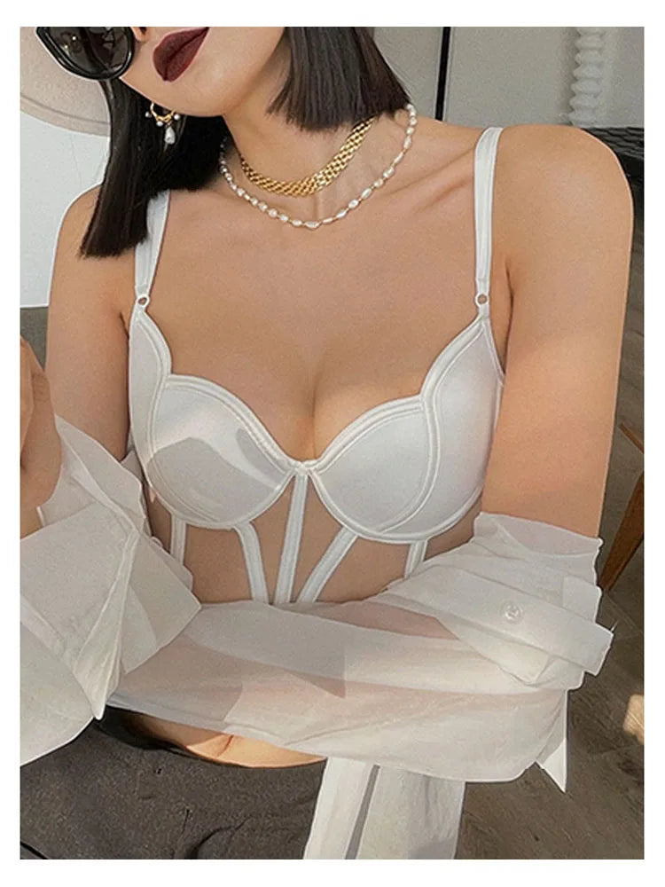 CINOON Women Push UpTransparent Lingerie New Sexy Shaper Bra Thin Beauty Back Underwear Female Fishbone Gauze Bralette