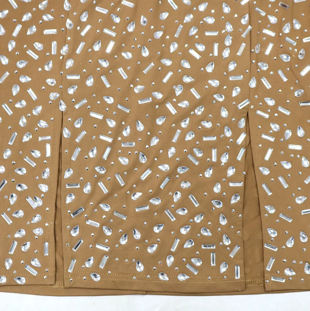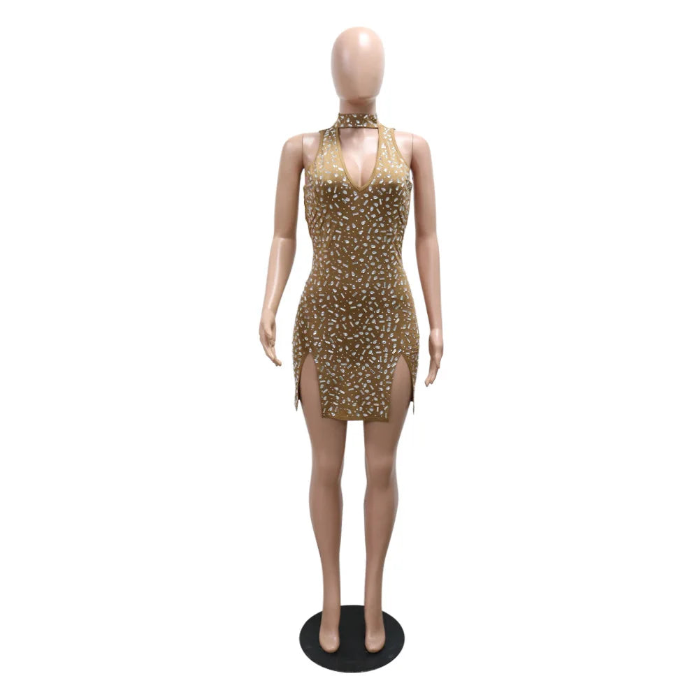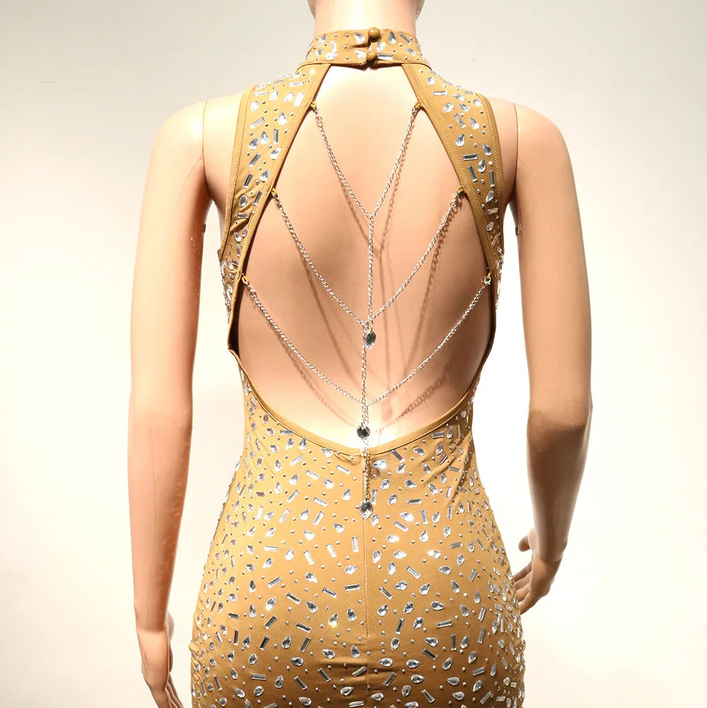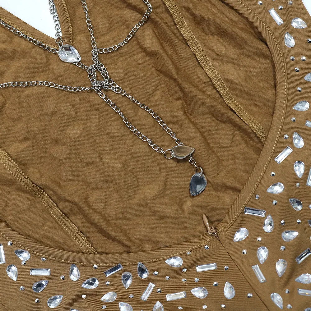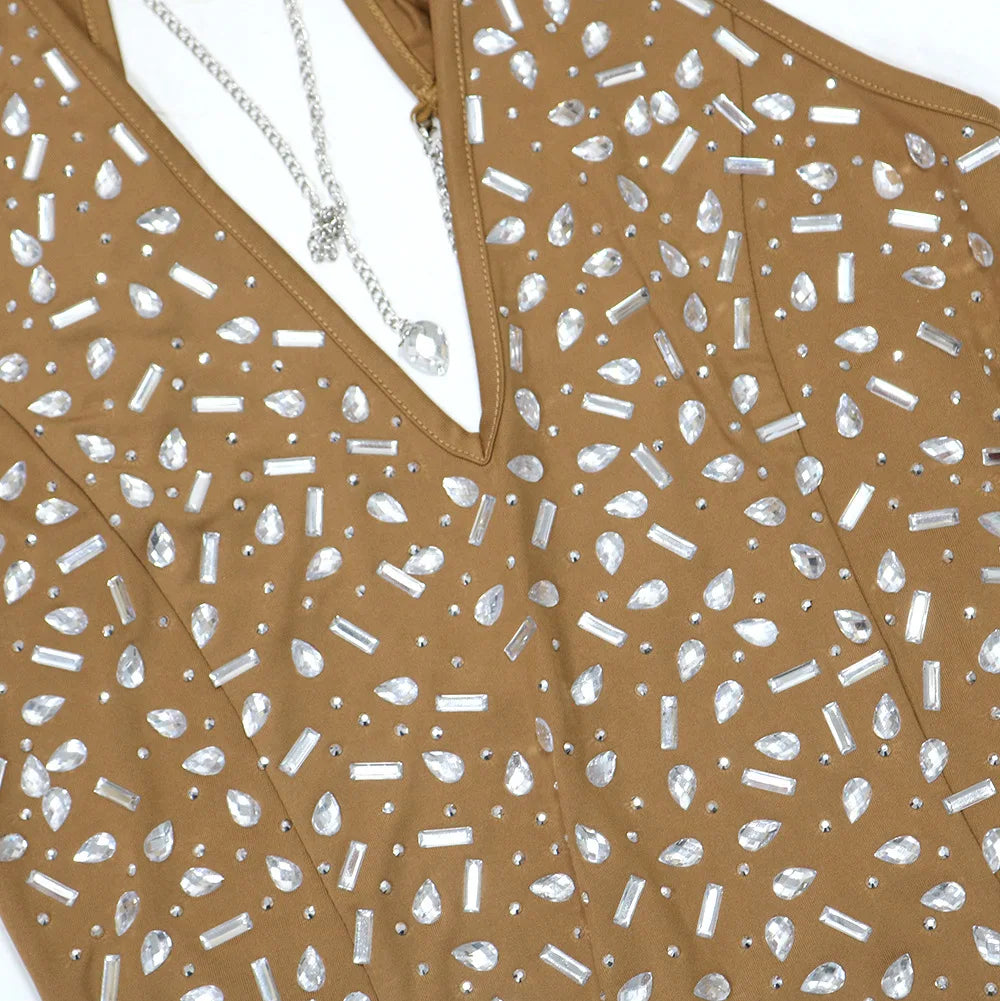 CM.YAYA Women V-neck Diamonds Rhinestones Chocker Sleeveless Mini Dress Bodycon Sexy Evening Night Party Club Vestidos Dresses