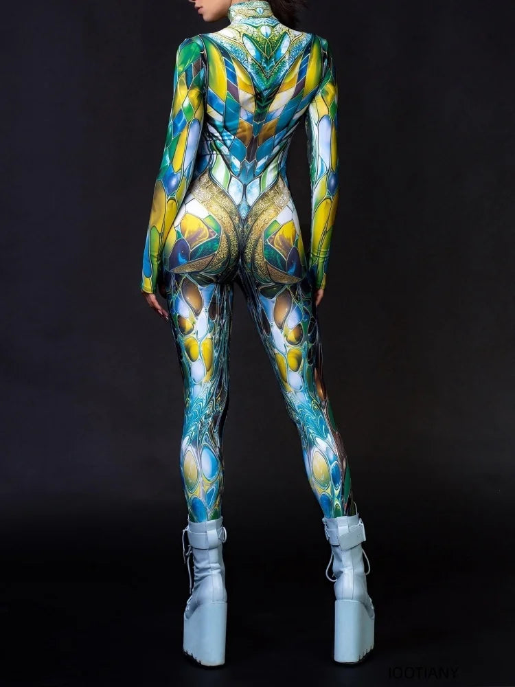 Colorful Sexy Bodysuit Punk Gothi Women Cosplay Jumpsuit Carnival Slim Zentai Suit Xmas Costume Festival Theme Party Catsuit