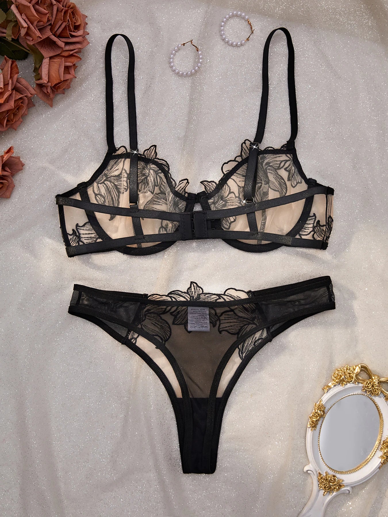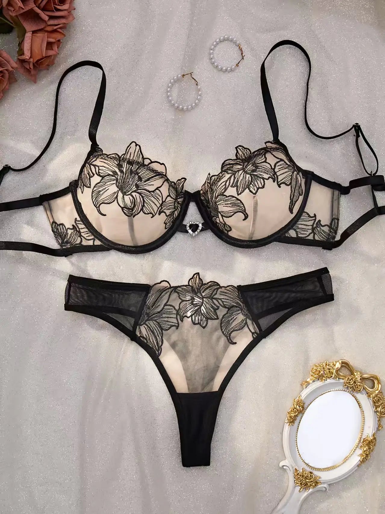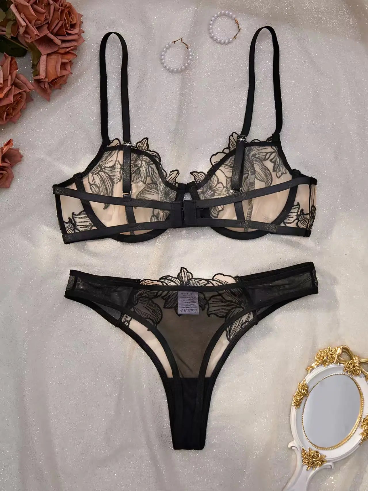 Elegant Black Sexy Nighty Underwire Bra Underwear Set Party Club Night Women Chef Ultrathin Underwear set