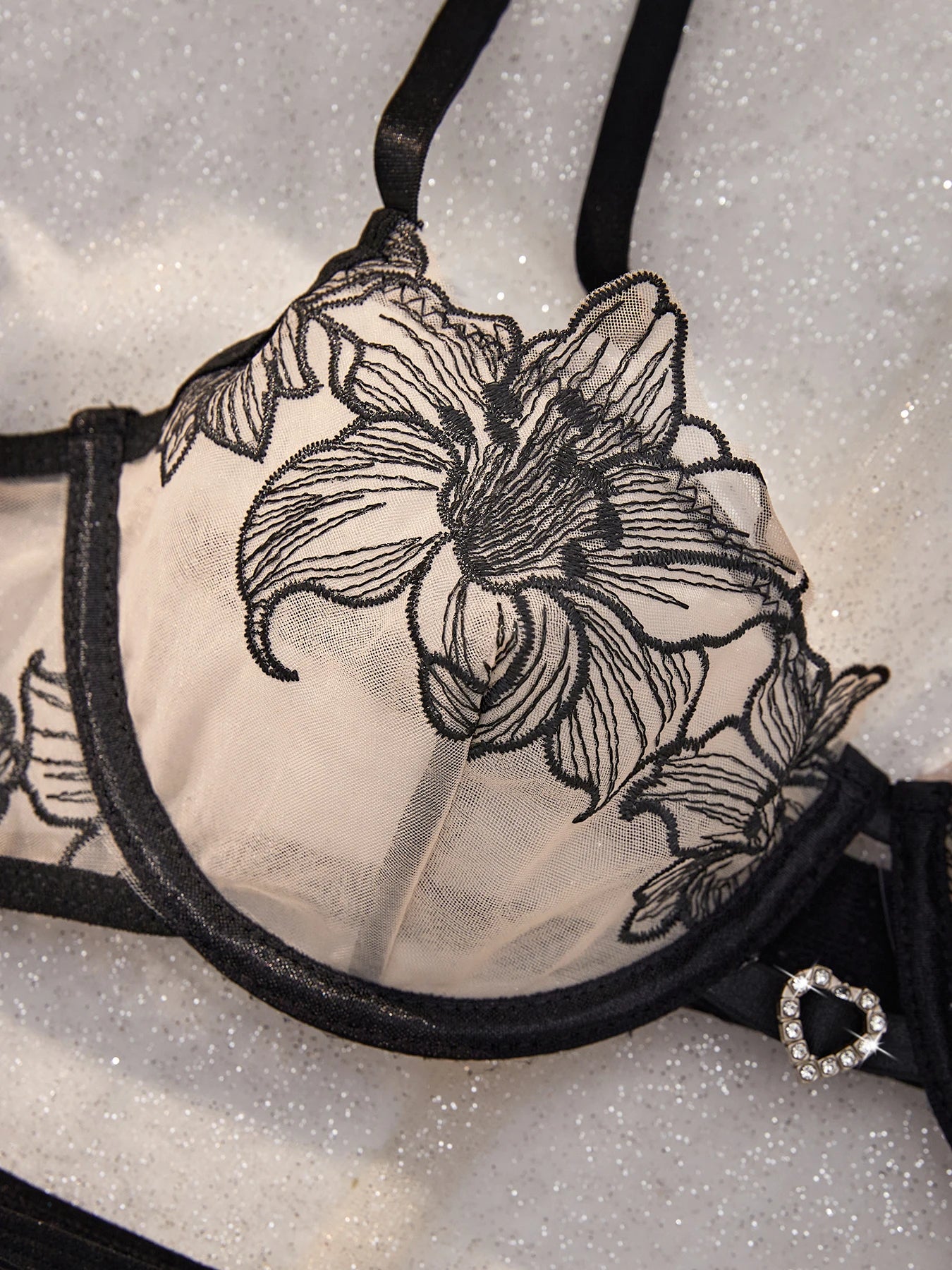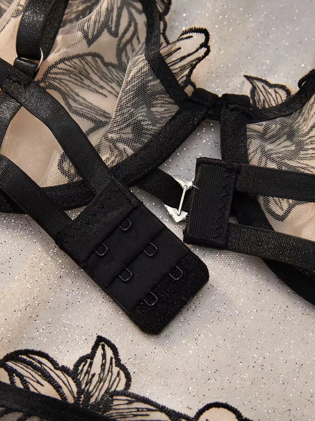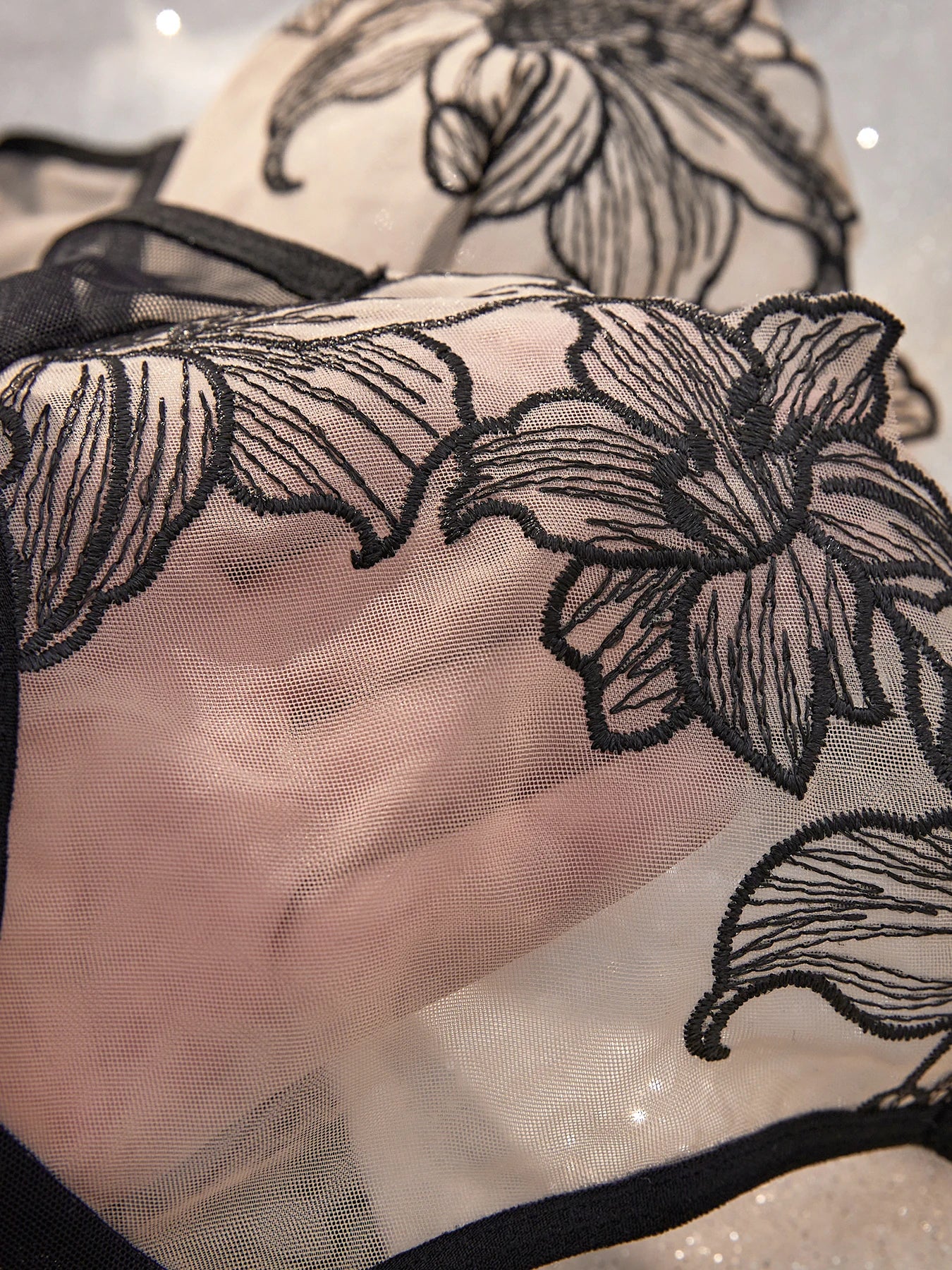 Elegant Black Sexy Nighty Underwire Bra Underwear Set Party Club Night Women Chef Ultrathin Underwear set