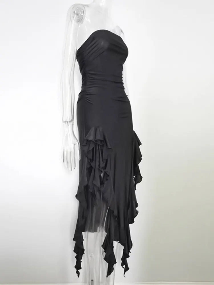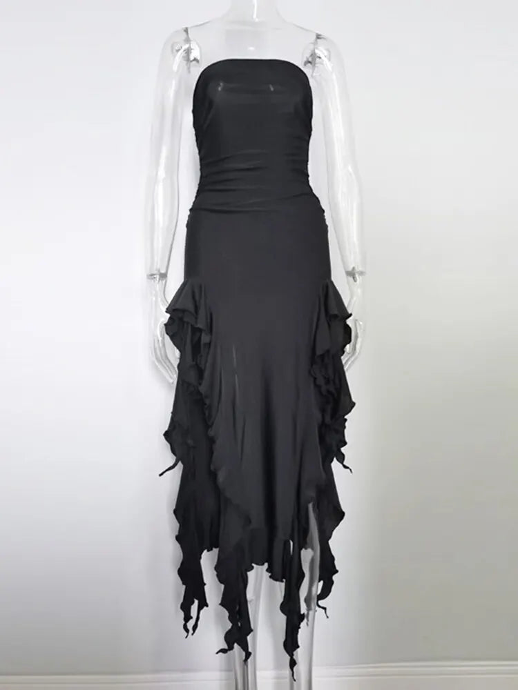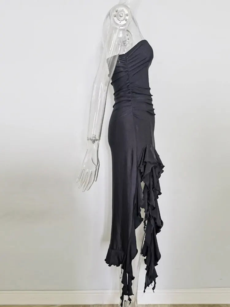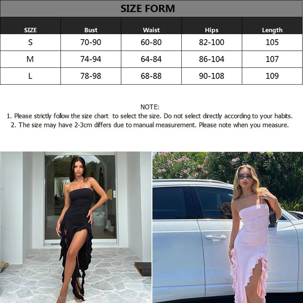 Elegant Ruffles Maxi Dress Summer Sexy Straps Sleeveless Ruched Evening Party Dresses for Women Backless Club Outfits