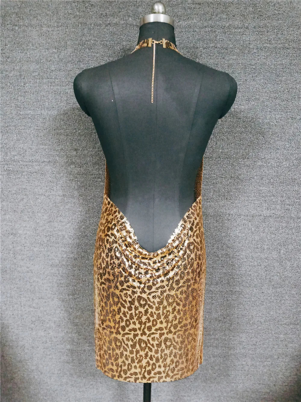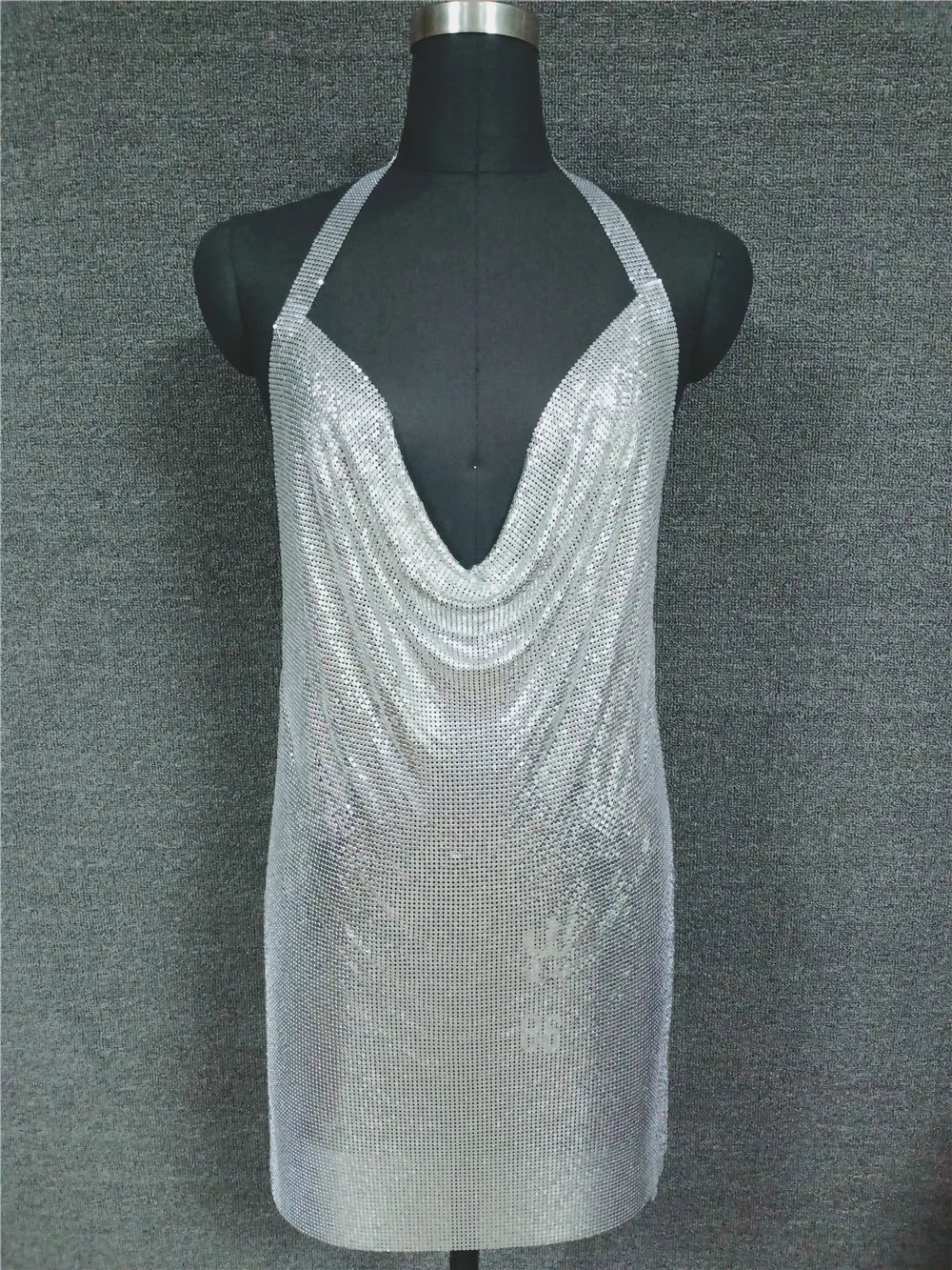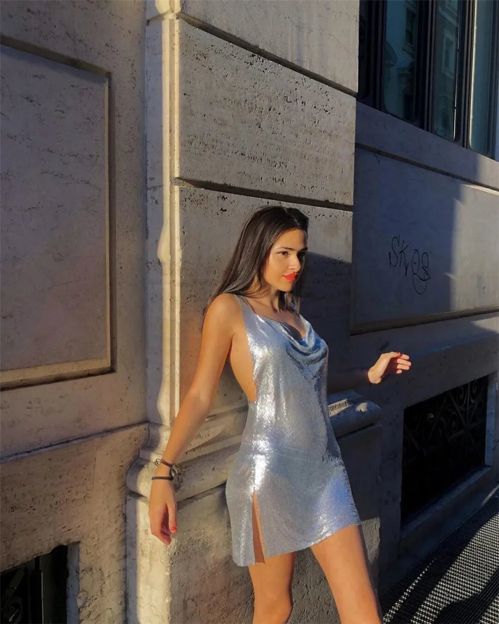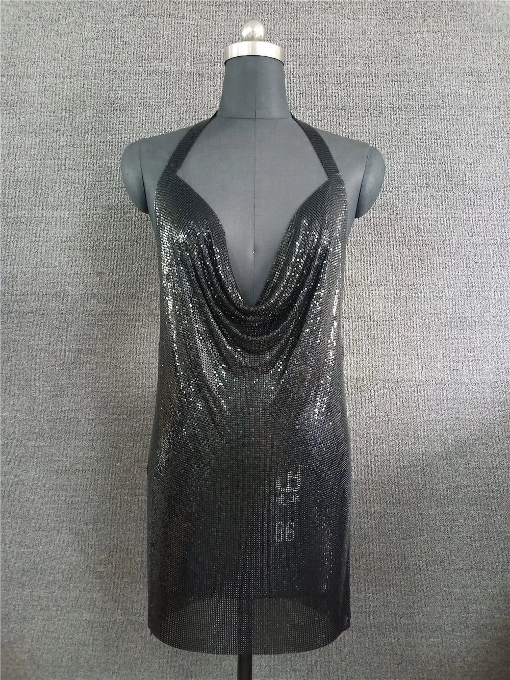 Glitter Metal Sequins Mini Dress Women Sexy Deep V Neck Backless Side Split Dress Rave Festival Nightclub Party Evening Dresses