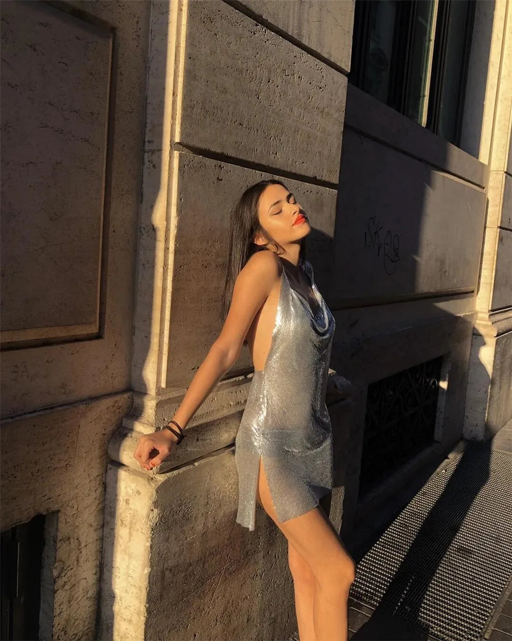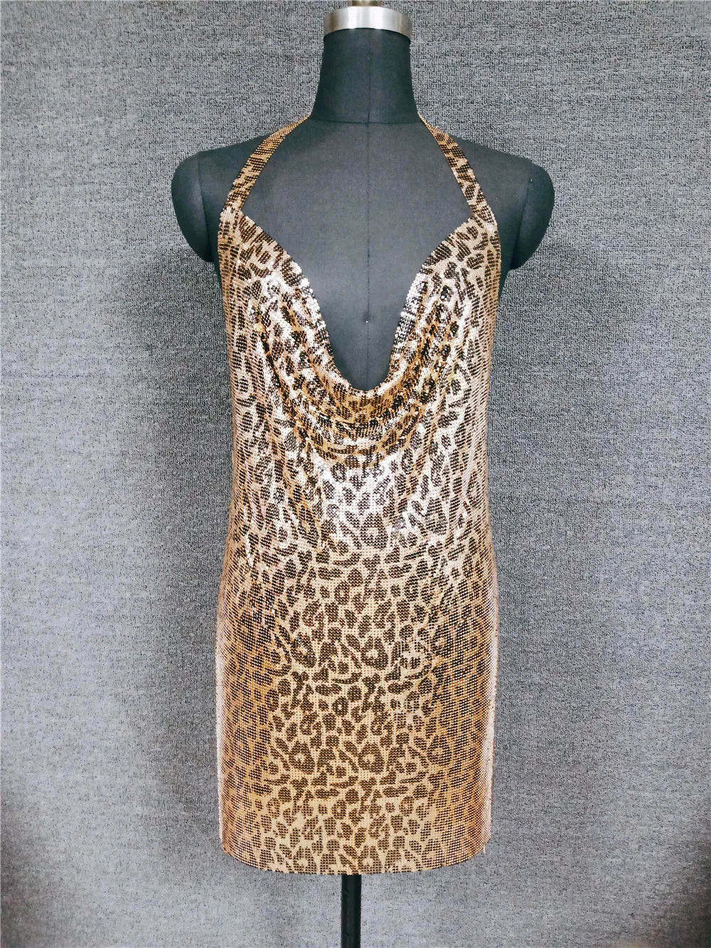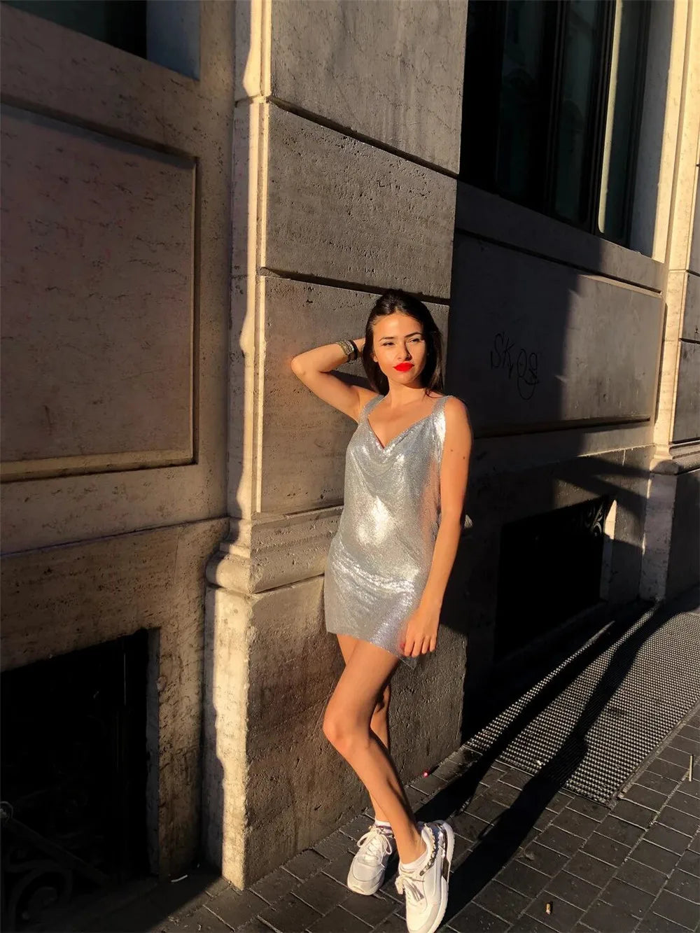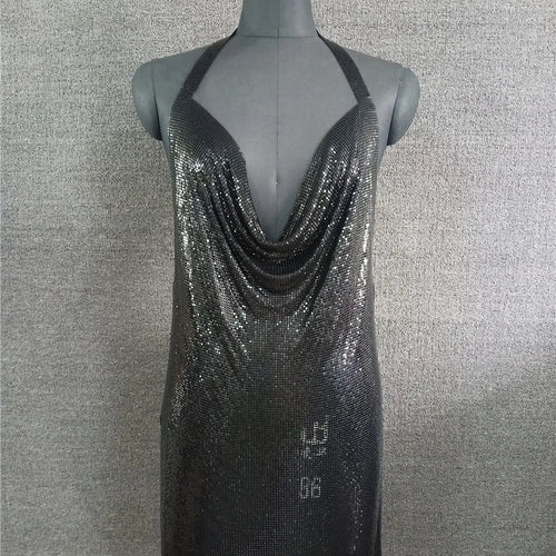 Glitter Metal Sequins Mini Dress Women Sexy Deep V Neck Backless Side Split Dress Rave Festival Nightclub Party Evening Dresses