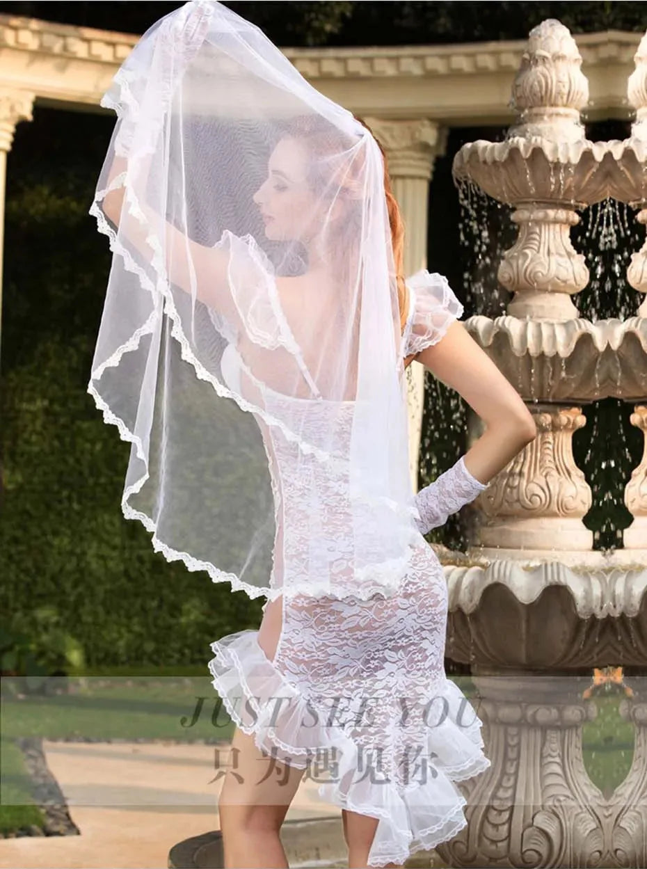 JSY Sexy Women's Wedding Dress Uniform Cosplay Lingerie Set Hot Erotic Transparent Lace Apparel For Sex Underwear Porno Outfit