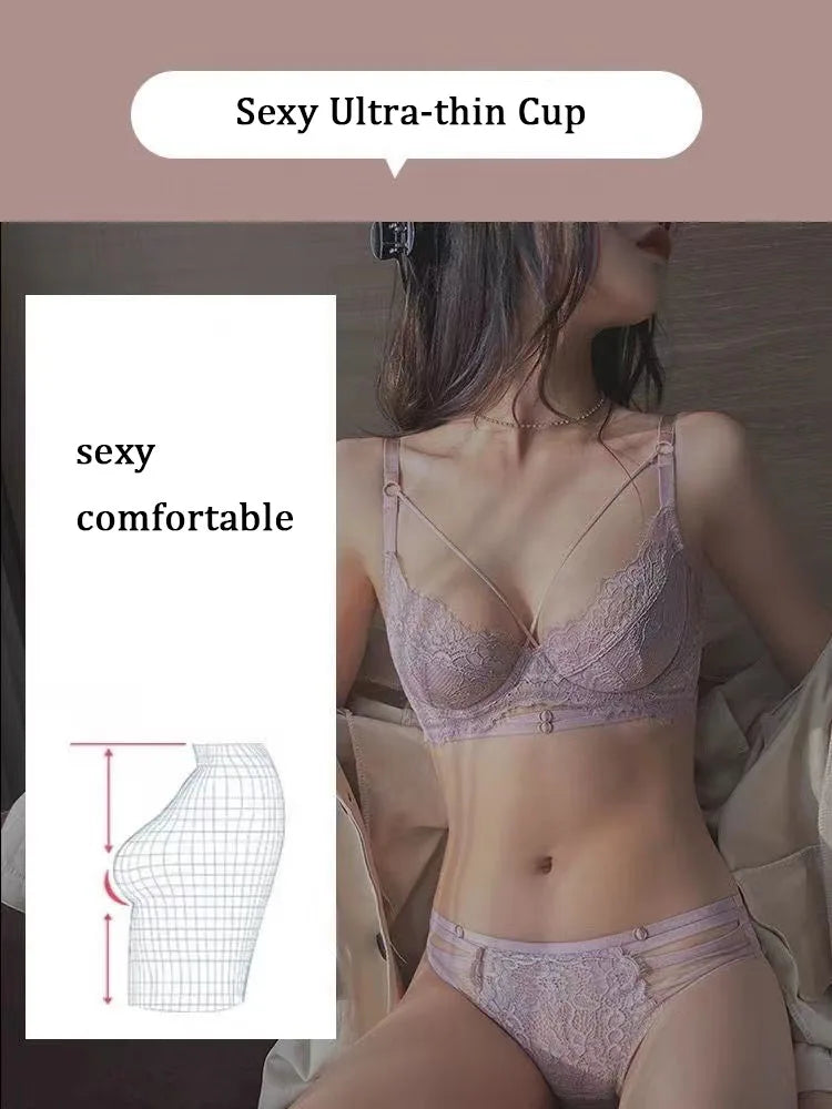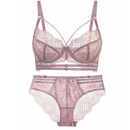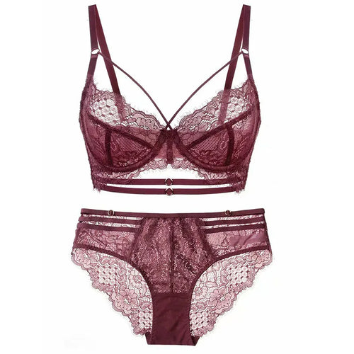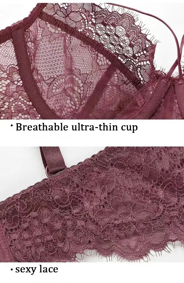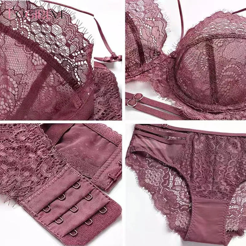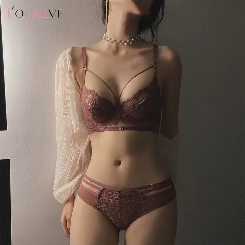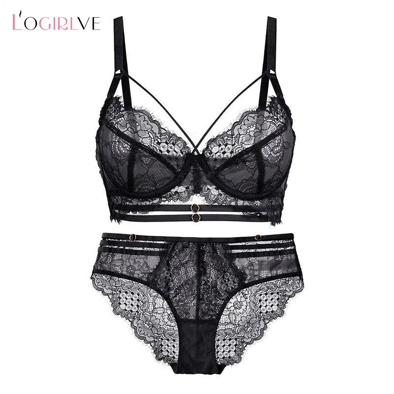 Logirlve Sexy Lingerie Ultra-thin Cup For Women underwear Classic Bandage Bra Set Push Up Brassiere Lace Plus Size Underwear Set