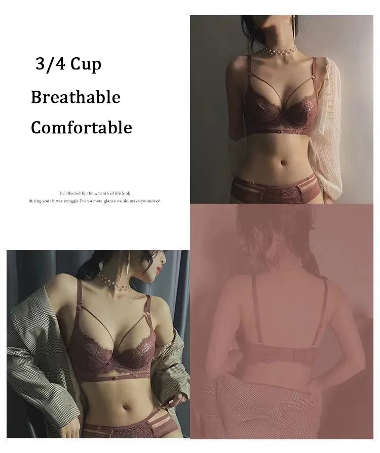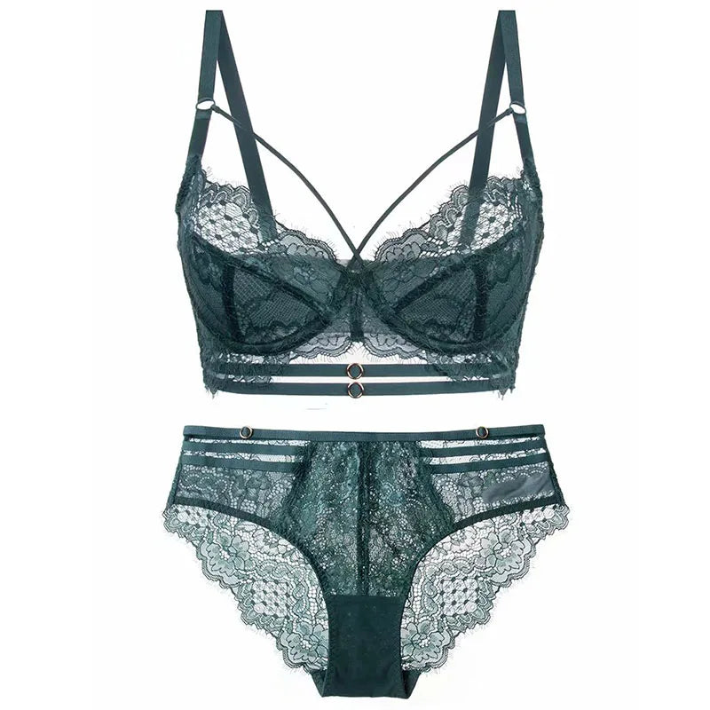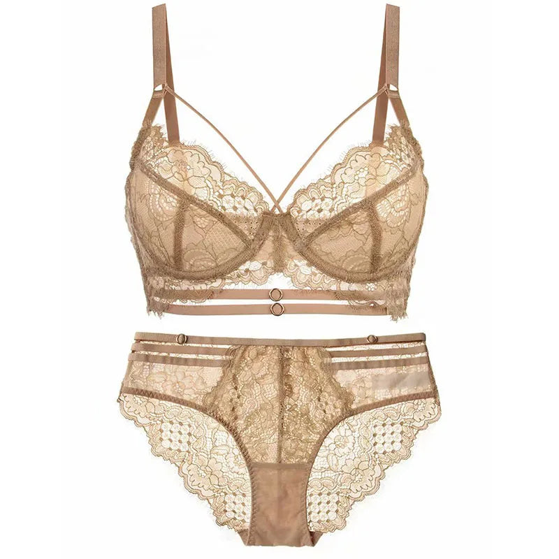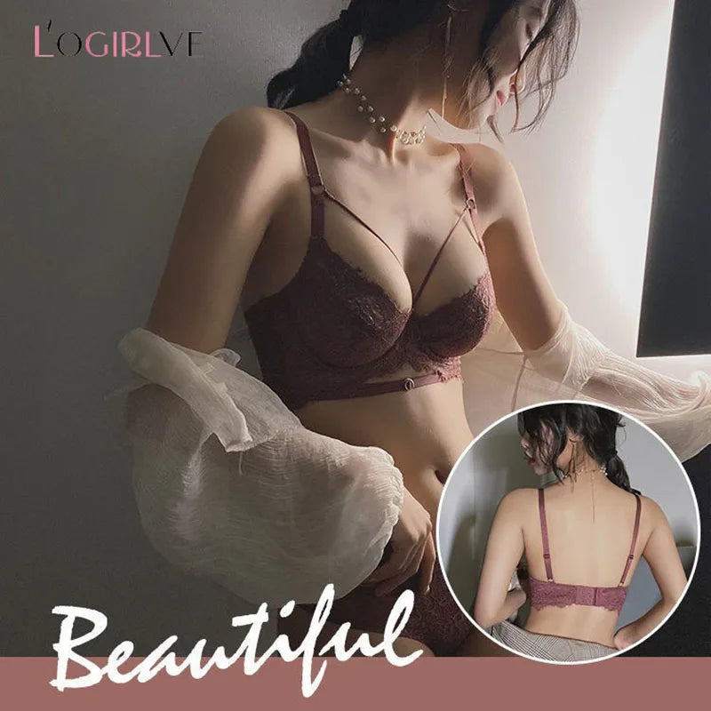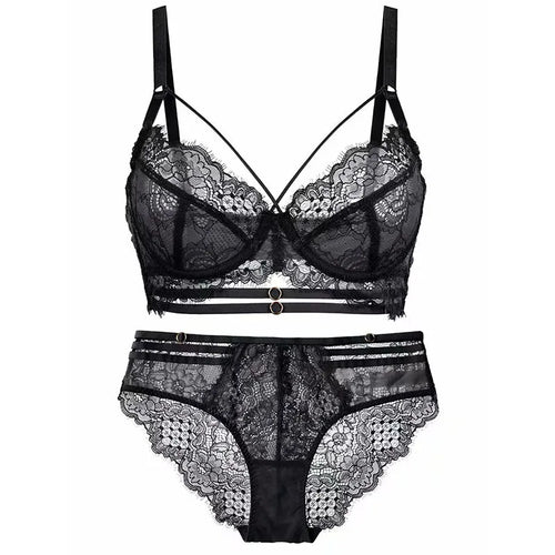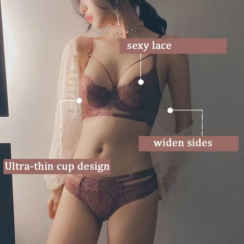 Logirlve Sexy Lingerie Ultra-thin Cup For Women underwear Classic Bandage Bra Set Push Up Brassiere Lace Plus Size Underwear Set