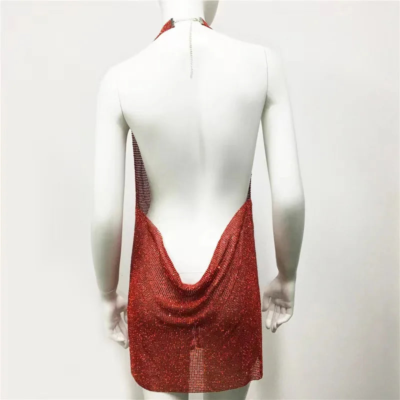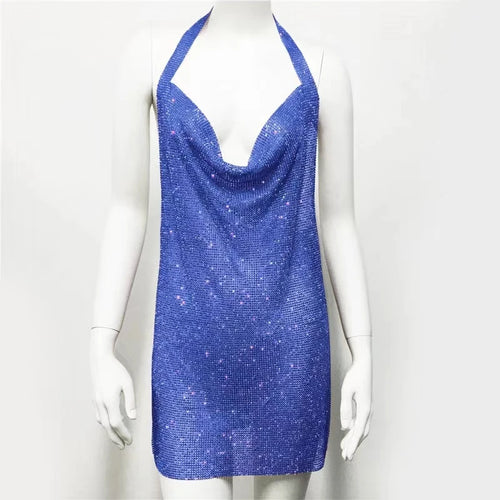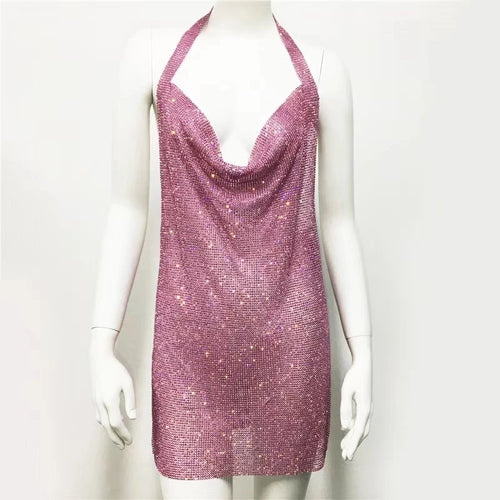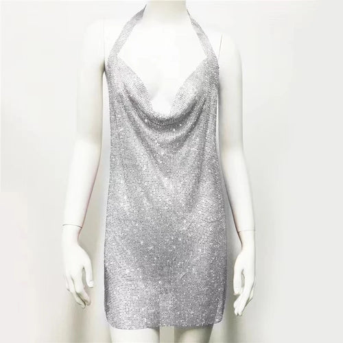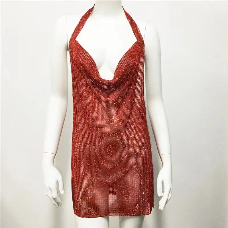 New European and American women's clothing, metal sequins, rhinestone suspender, sexy party, sweet and spicy style dress