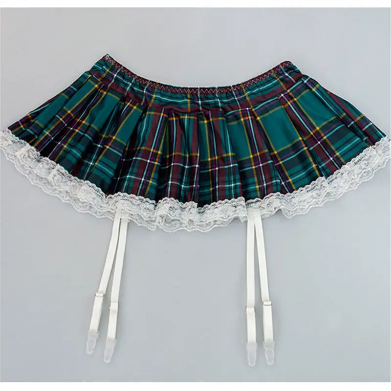 New Hot Sexy Lingerie Youth Student Style Plaid Skirt Lace Hemline Elastic Belt Comfortable for Women Cosplay Passion Night