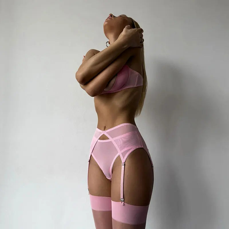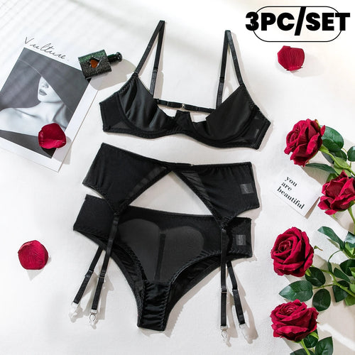 Sexy Erotic Set Open Bra + Back Open Panty Underwear Set Sensual Intimates Women Sexy Garter Kit Tassel Lingerie Set
