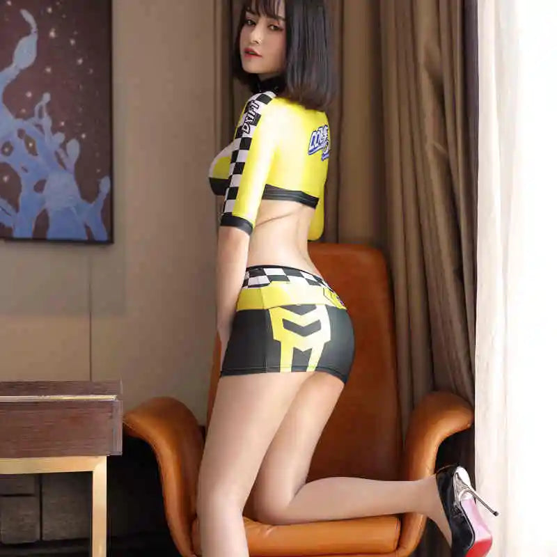 Sexy Lingerie Passionate Anime Speed Racing Uniform Five-Point Sleeves Stand-Up Collar Zipper Contrast Stitching Skirt COS Suit