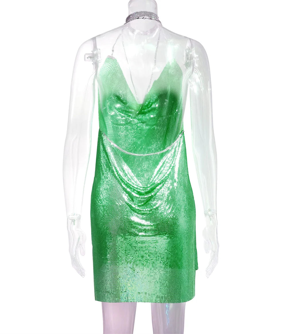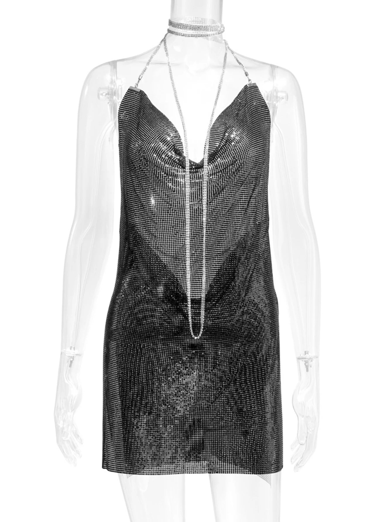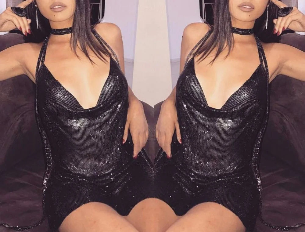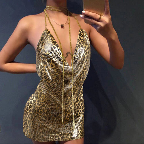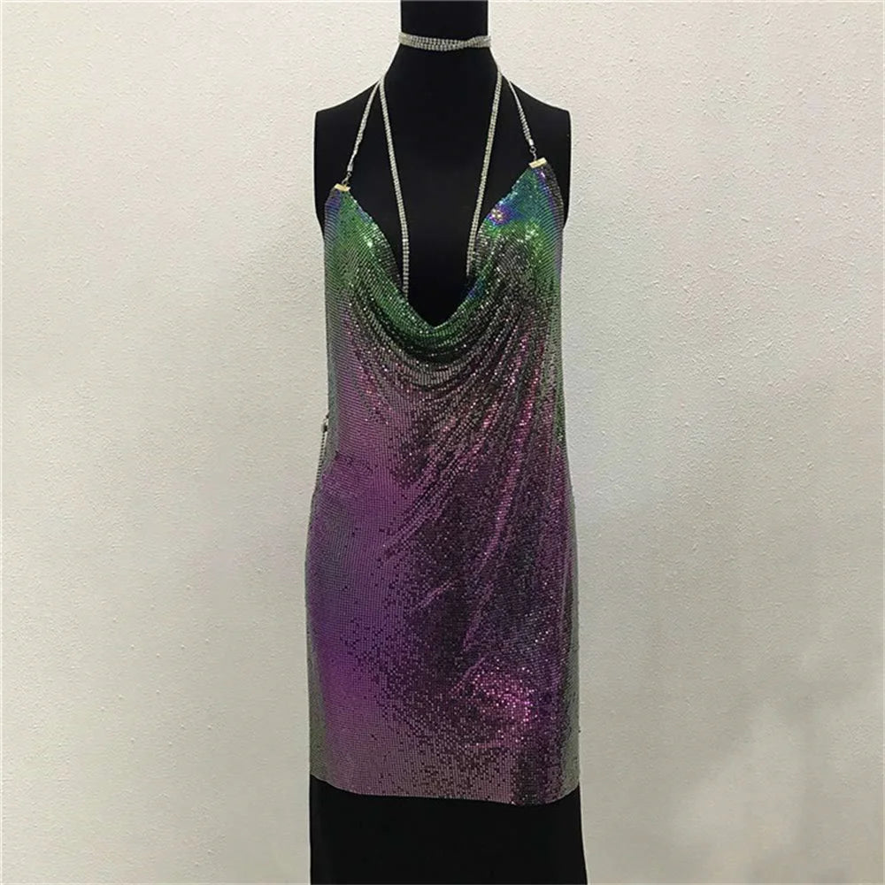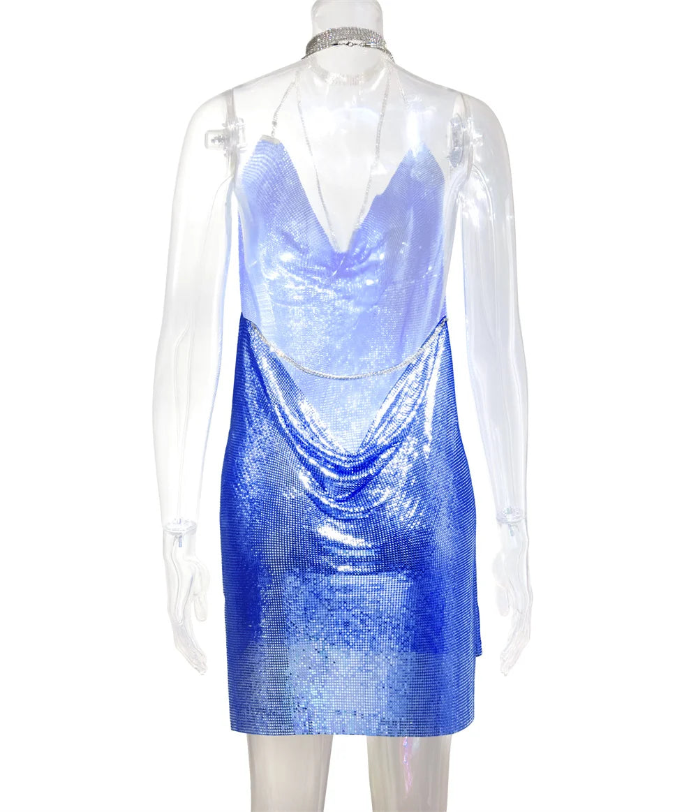Sexy see through Chain Sequin summer dress women backless mini birthday party dress night club outfits evening dresses vestidos