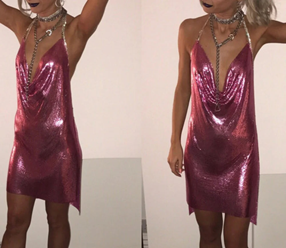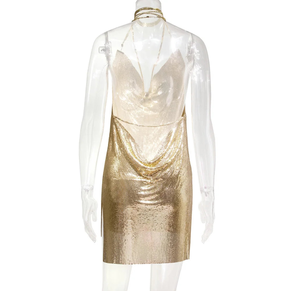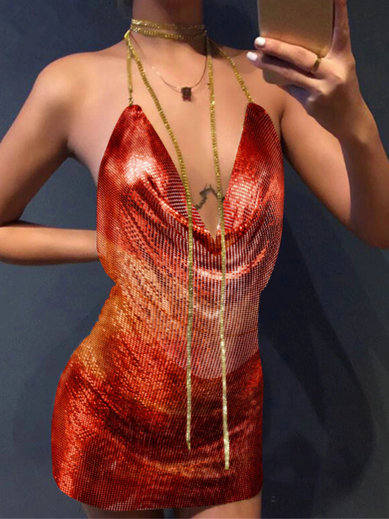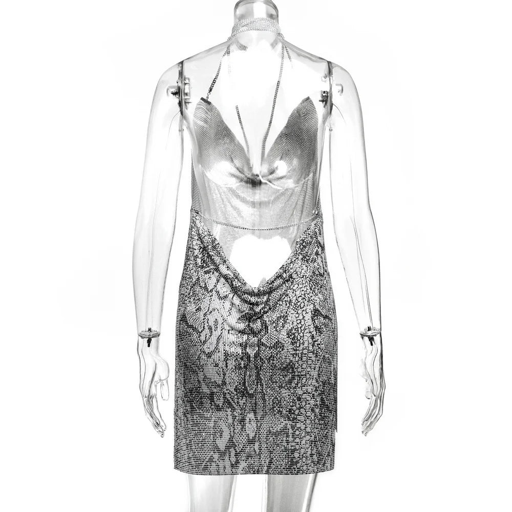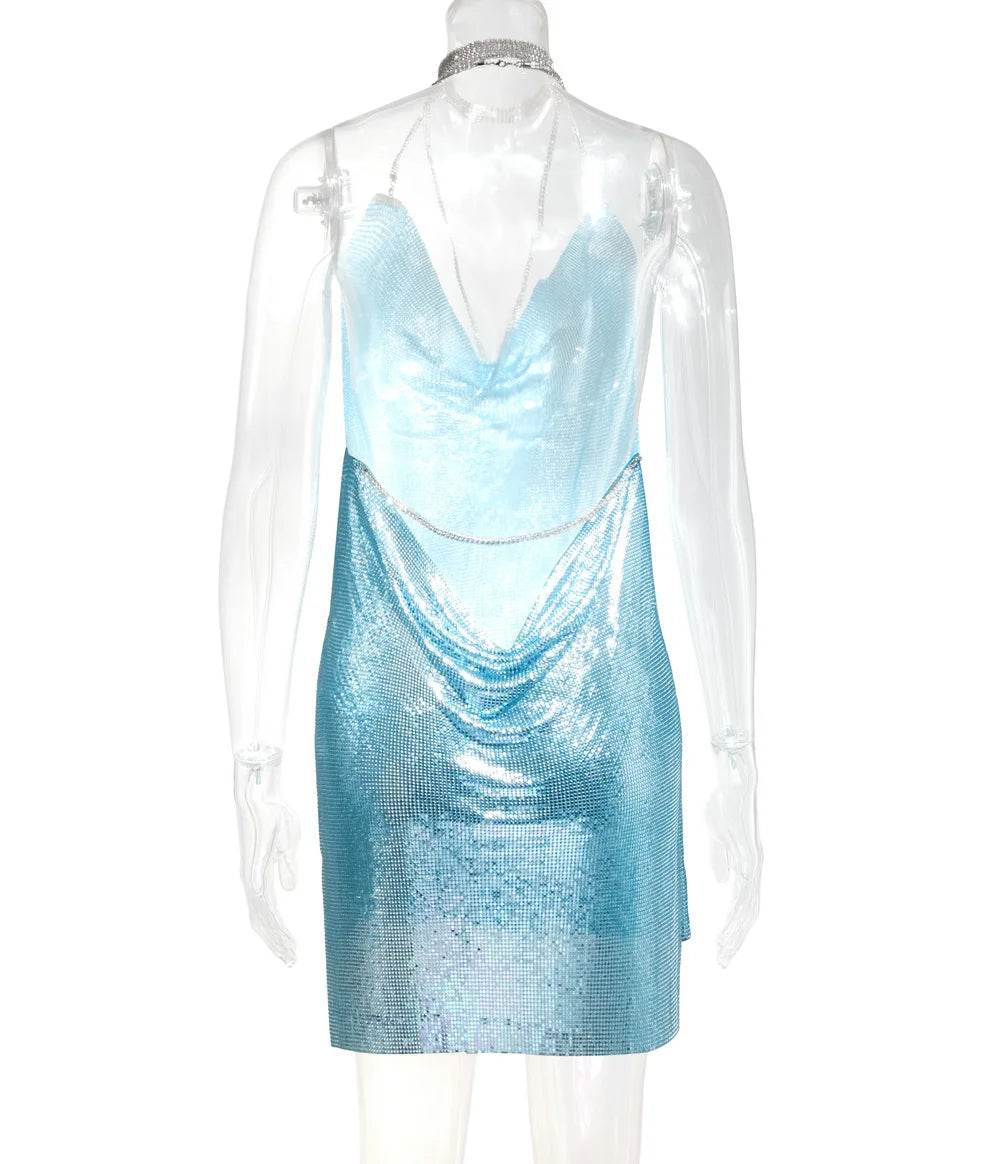 Sexy see through Chain Sequin summer dress women backless mini birthday party dress night club outfits evening dresses vestidos