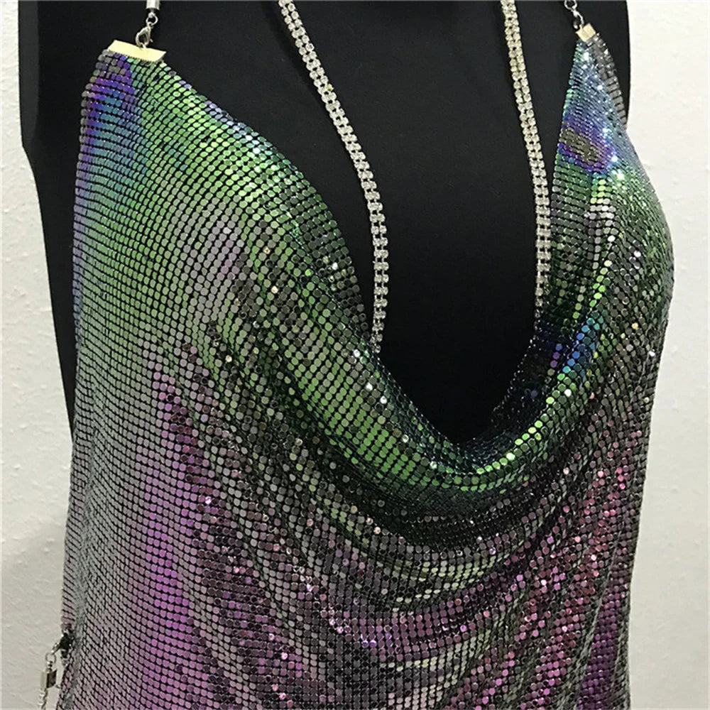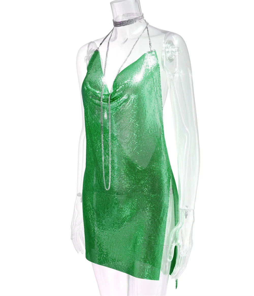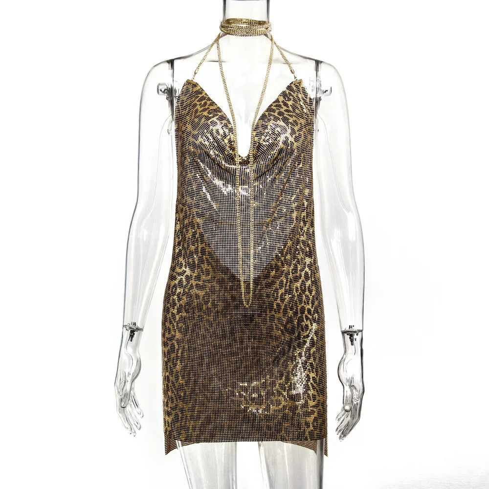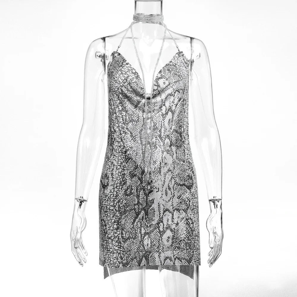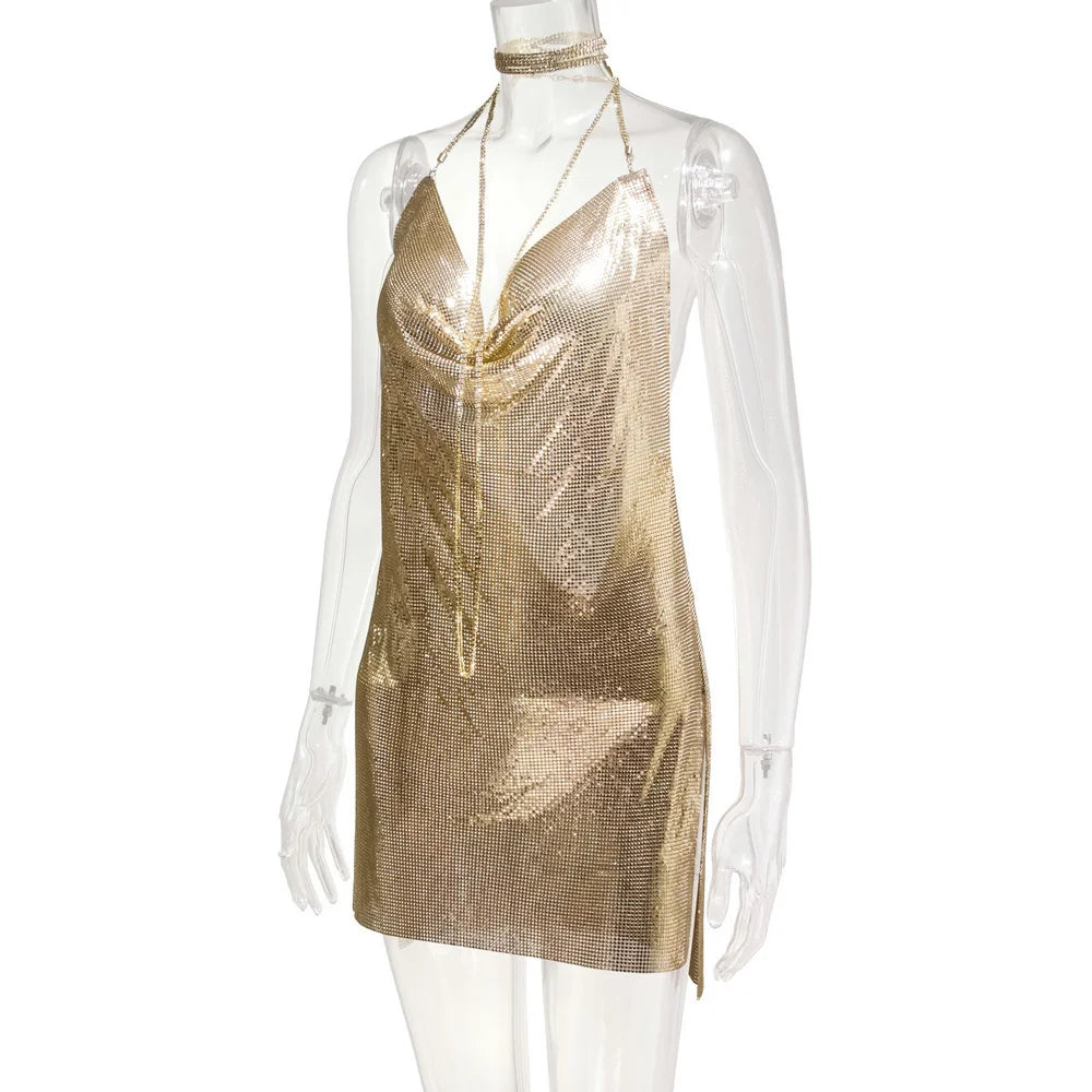 Sexy see through Chain Sequin summer dress women backless mini birthday party dress night club outfits evening dresses vestidos