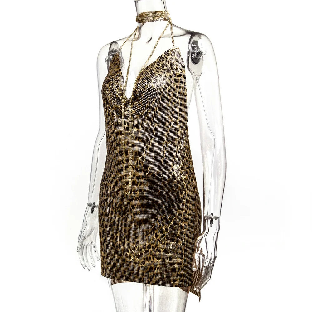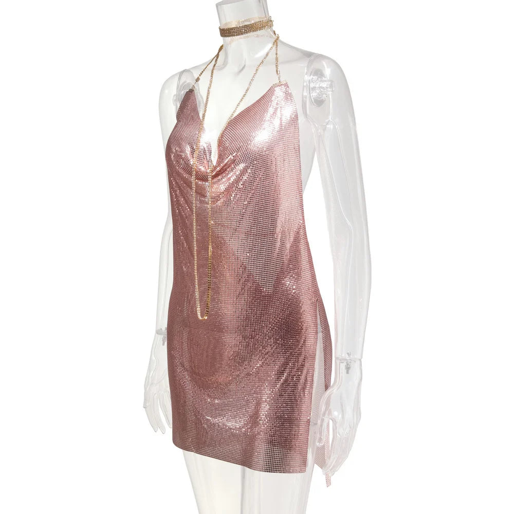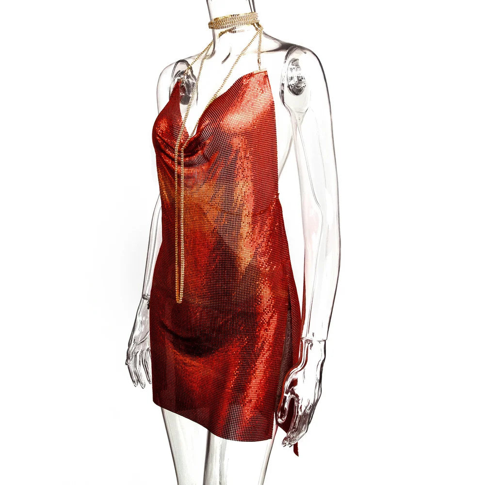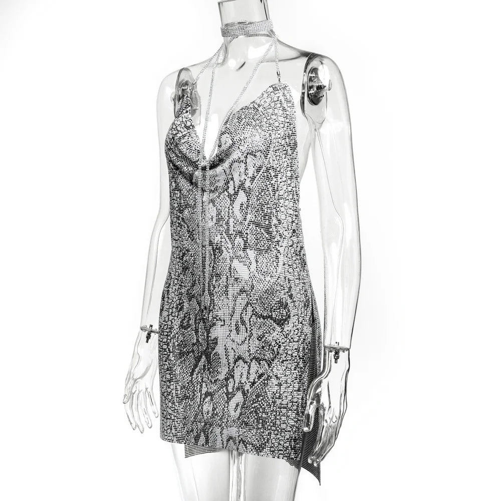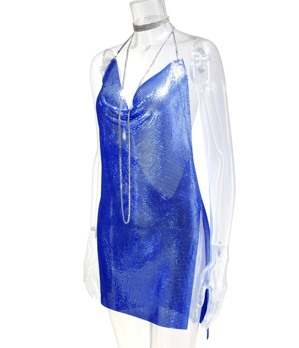 Sexy see through Chain Sequin summer dress women backless mini birthday party dress night club outfits evening dresses vestidos