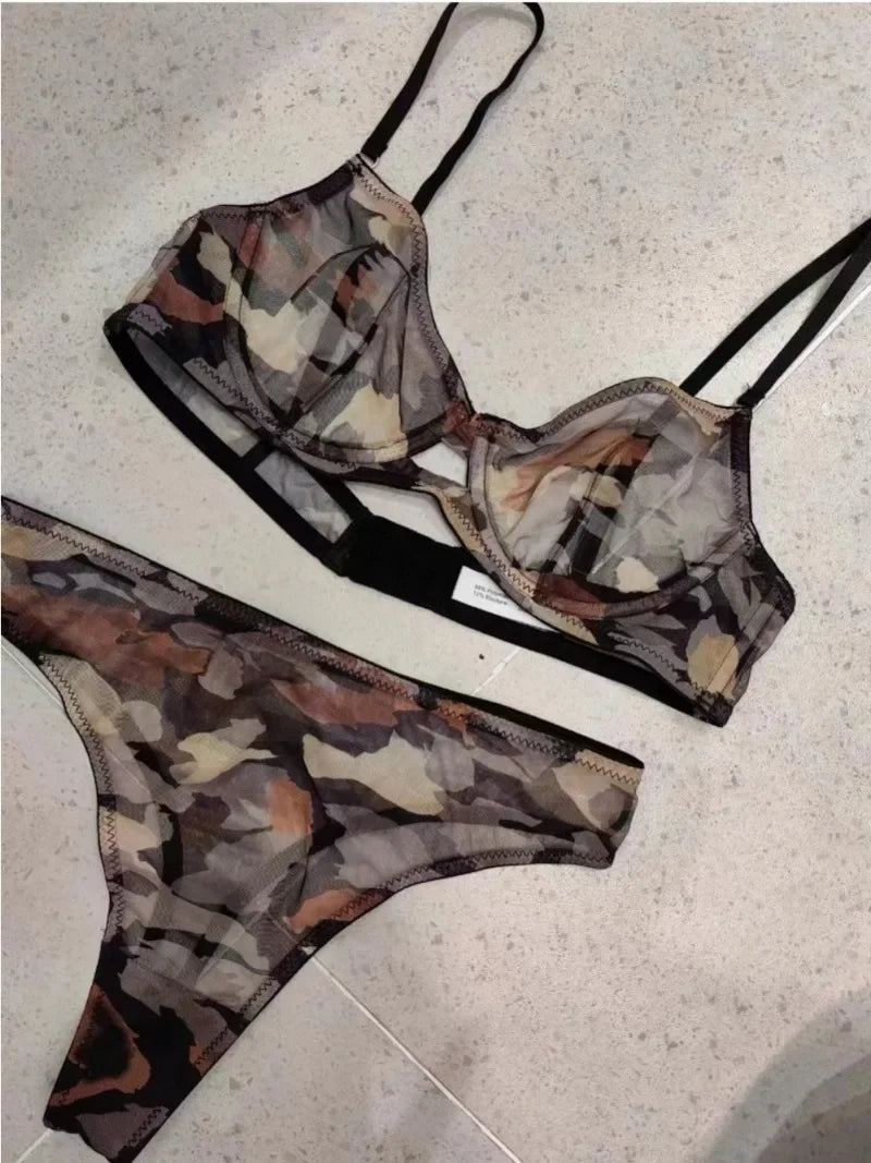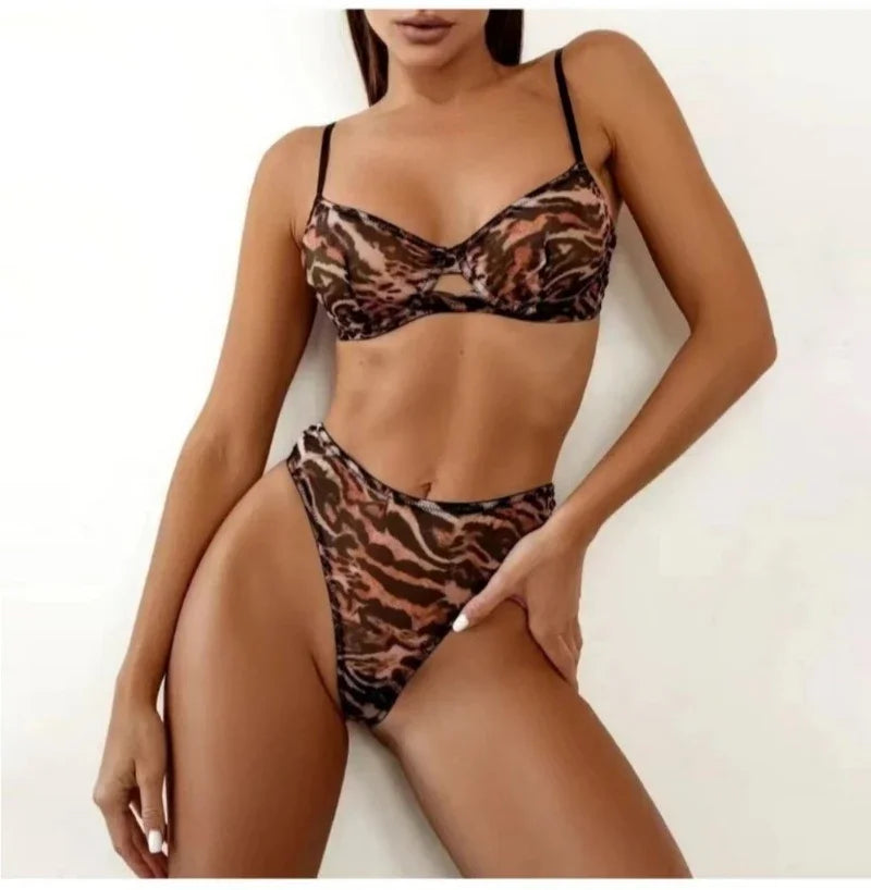 Sexy Ultra Thin Bra Without Padding Leopard Print Printed Underwear Mesh Gauze Ventilation Thin Sexis Women Lingerie Panties Set