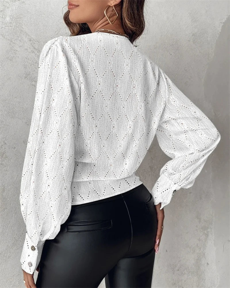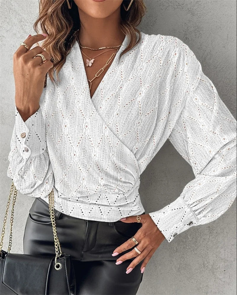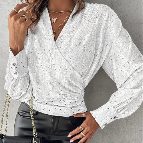 Sexy V Neck Long Sleeve Shirts Blouses Office Ladies Spring Summer Fashion Elegant Solid White Blouse For Women 2025 Female Tops