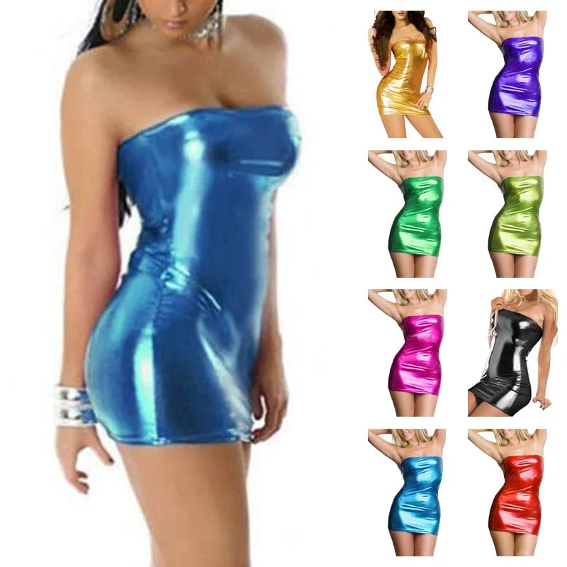 Sexy Women's Patent Leather Wet Top Dress Tight Club Wear Imitation Leather Wrap Chest Dress Short Skirt Brand New