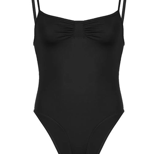 Sweetown Sleeveless Skinny Shirring Skinny Sexy Spaghetti Strap Bodysuit For Women Black Solid Simple Basic Vacation Camisole
