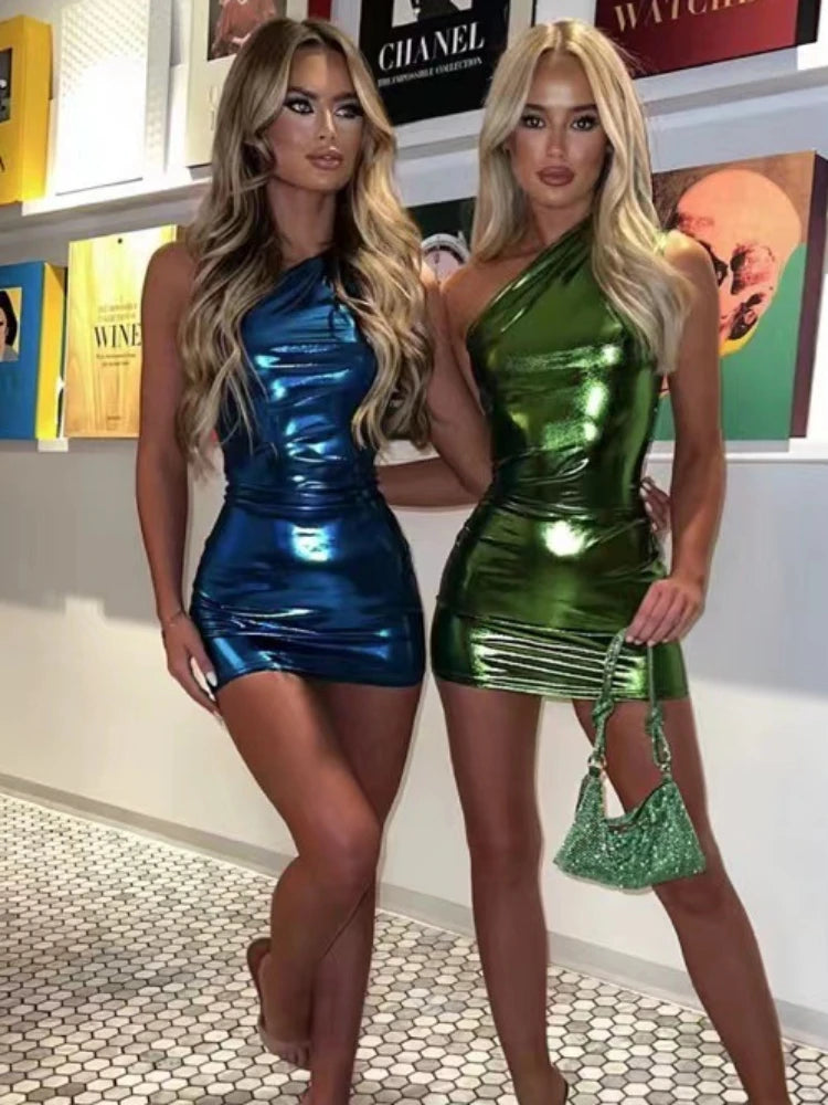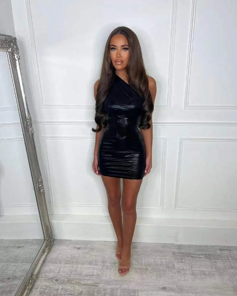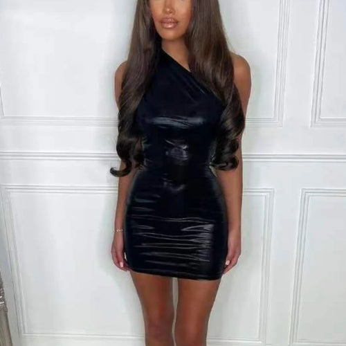 TARUXY Silver PU Mini Dress Womens Bodycon Sexy Sleeveless High Waisted Sheath Dresses Party Fashion Slim Dress Women 2024 New