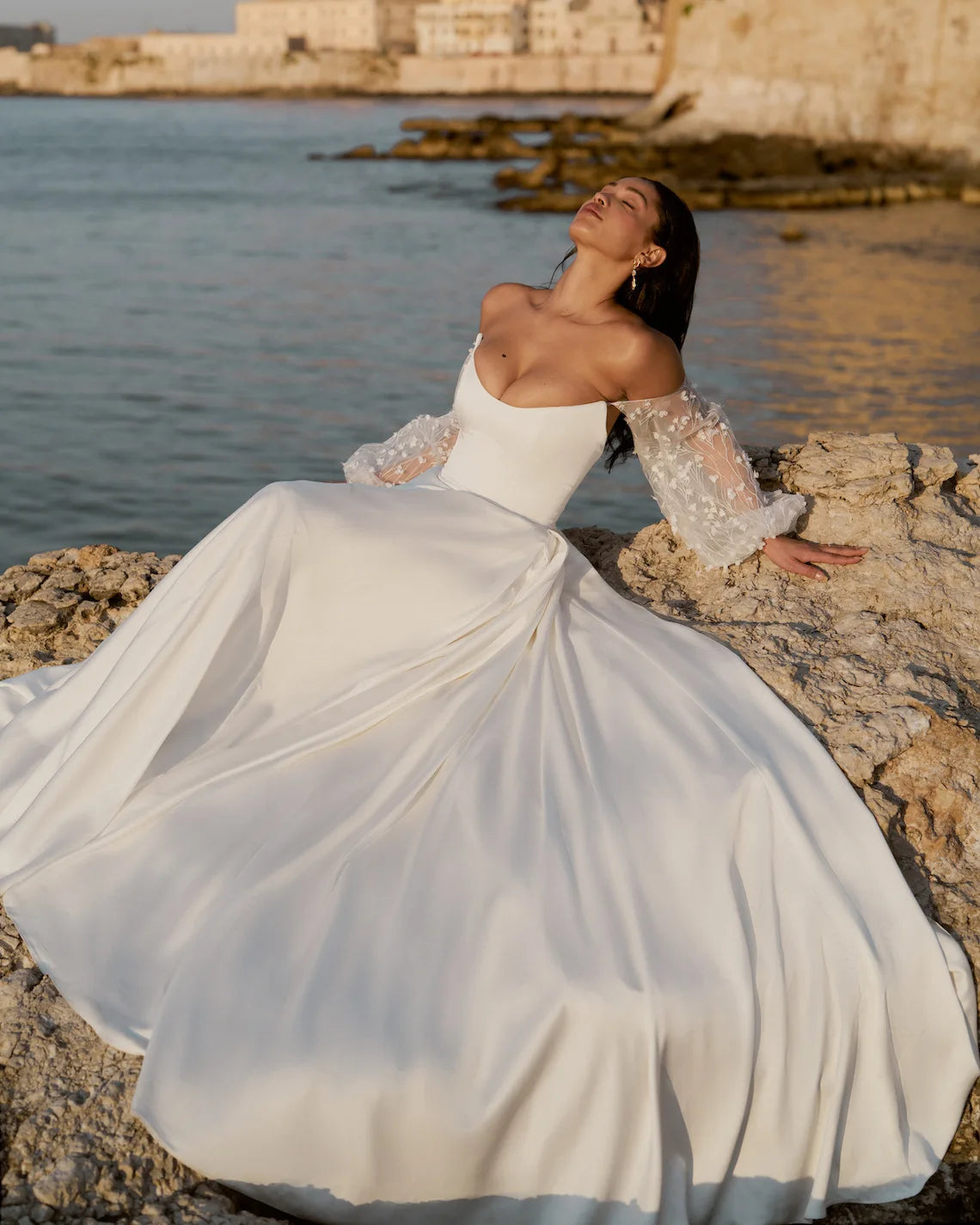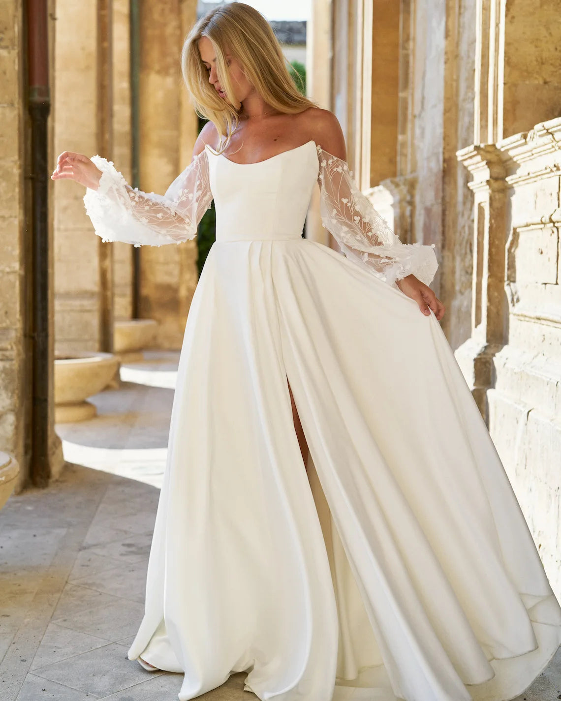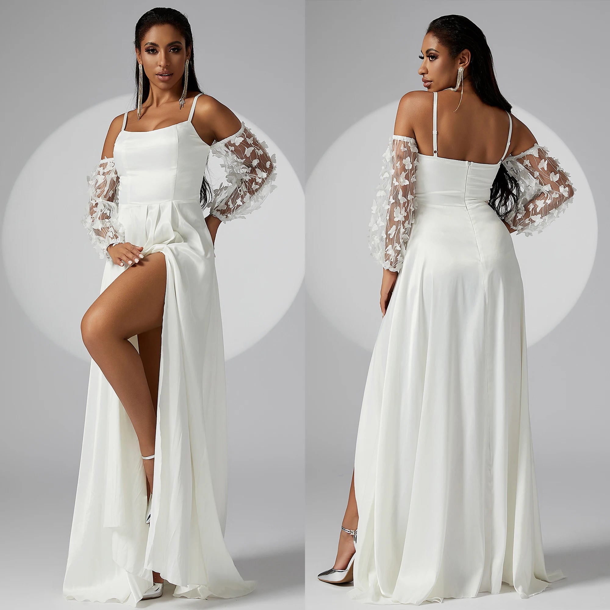 Vestidos De Novia 2024 White Off Shoulder Wedding Party Dress Long Sleeve Sexy Simple Brides Wedding Dresses Lace Robe De Mariée