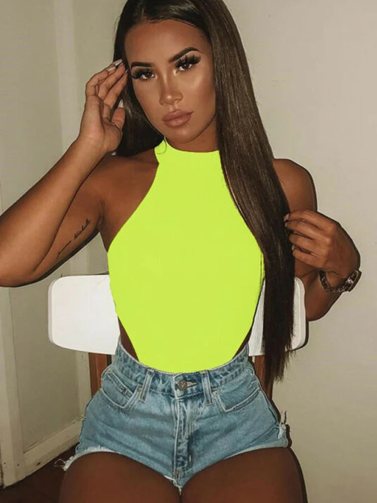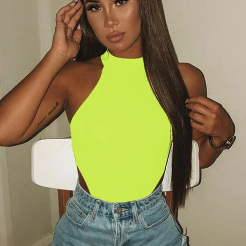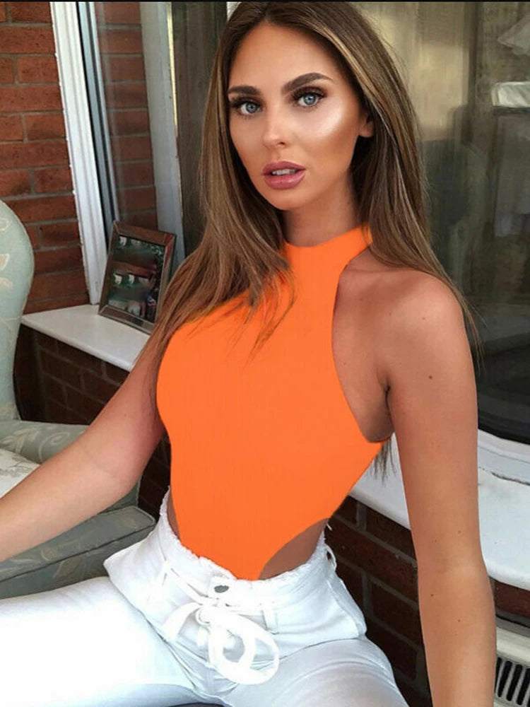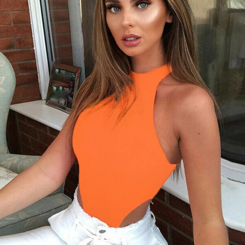 Women Ladies Sexy Sleeveless Solid Color High Cut Slim Skinny Bodycon Club Beach Fashion Halter Bodysuits Leotard