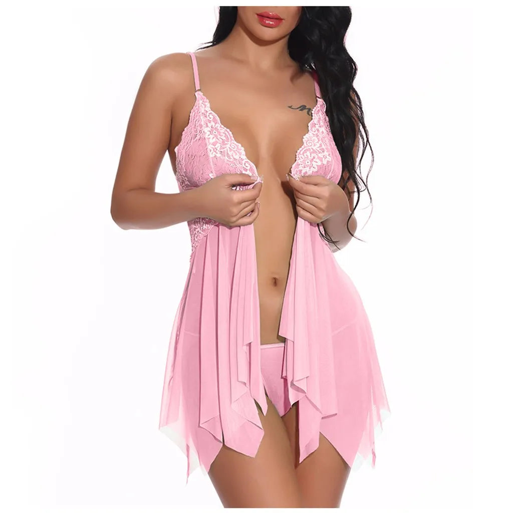Women Sexy Night Dress Erotic Lingerie Front Closure Transparent Lace Underwear 2024 Floral Sleepwear Sex Woman Nightie