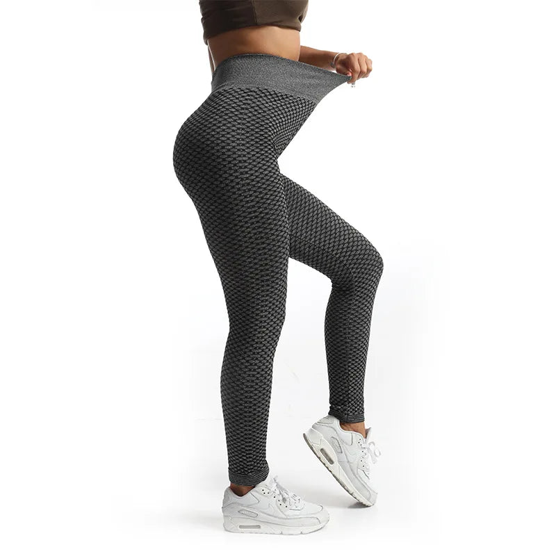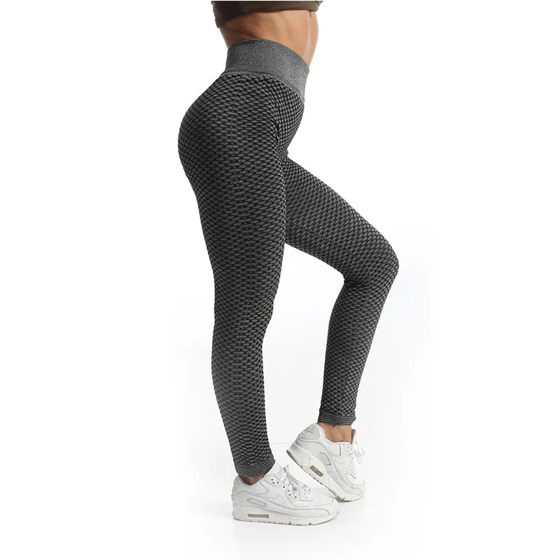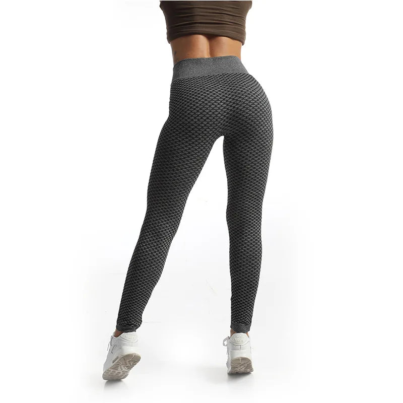 CUHAKCI High Waist Stretch Honeycomb Print Leggings Hip Lifting Workout Yoga Women Faux Denim Pant Stretch Slim Fit Blue Jeggins