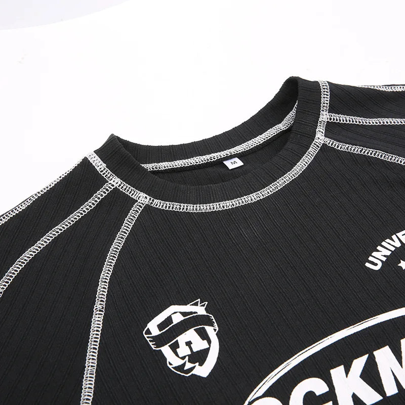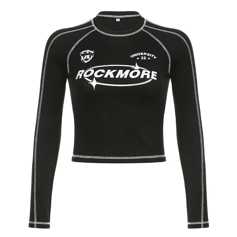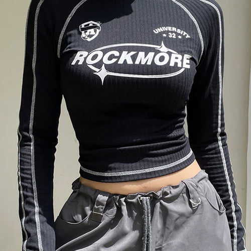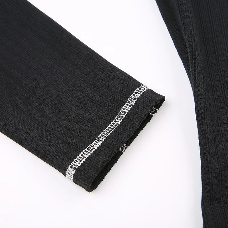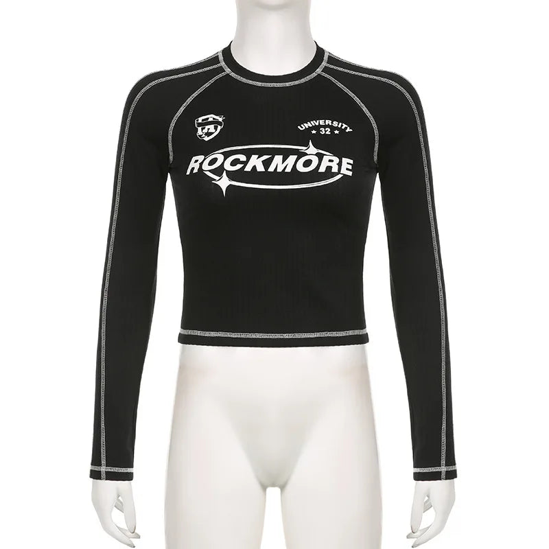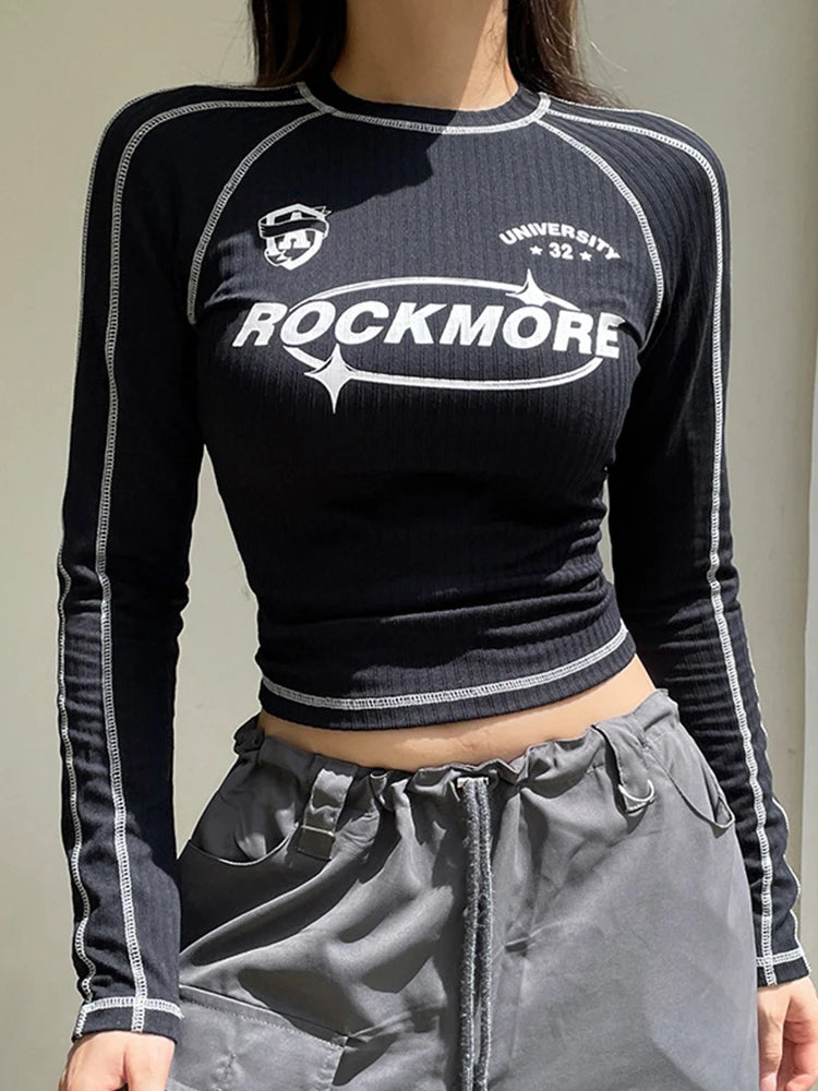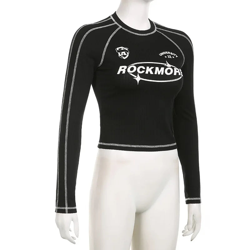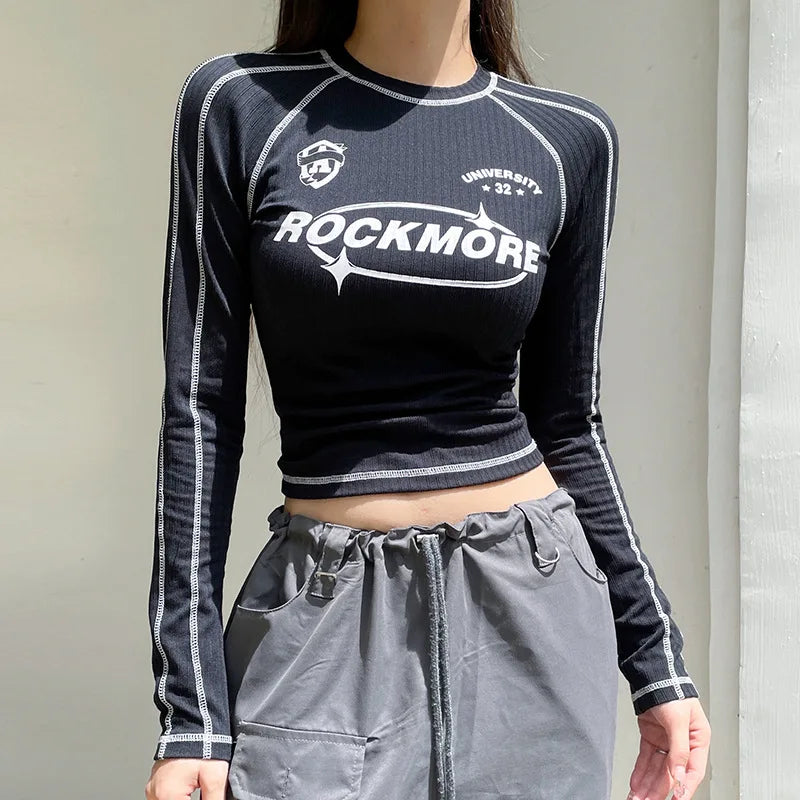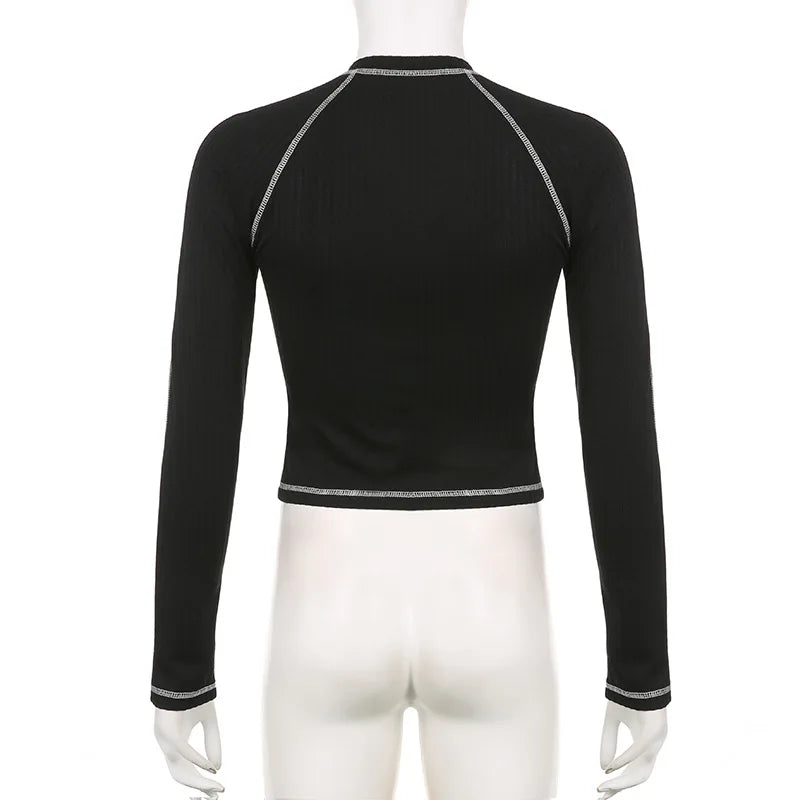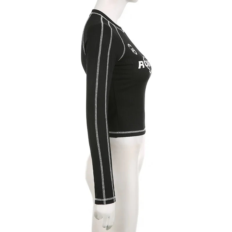 Black Sexy Women's Tees Autumn Fashion New Streetwear Bodycon Casual Basic T-shirt Female Long Sleeves Print O-Neck Y2K Crop Top