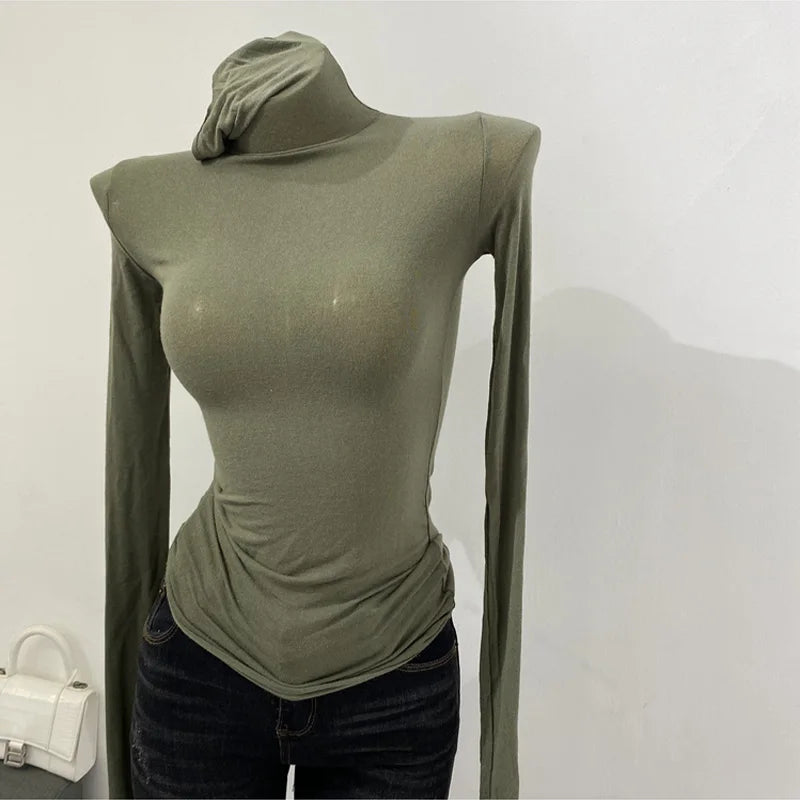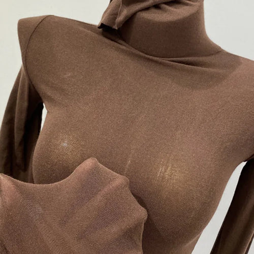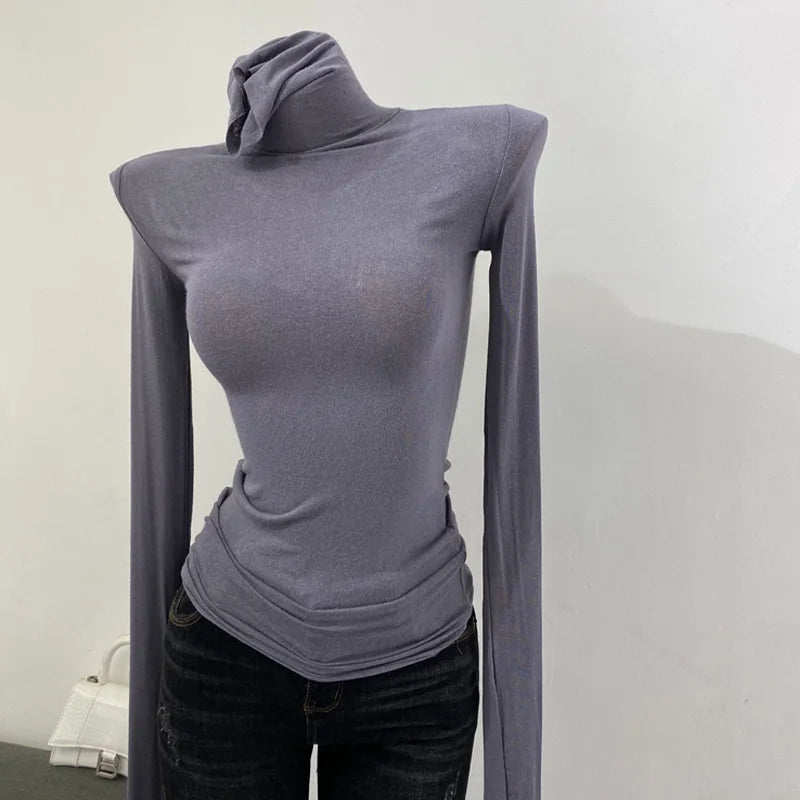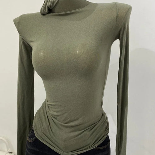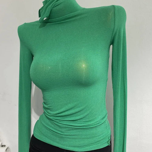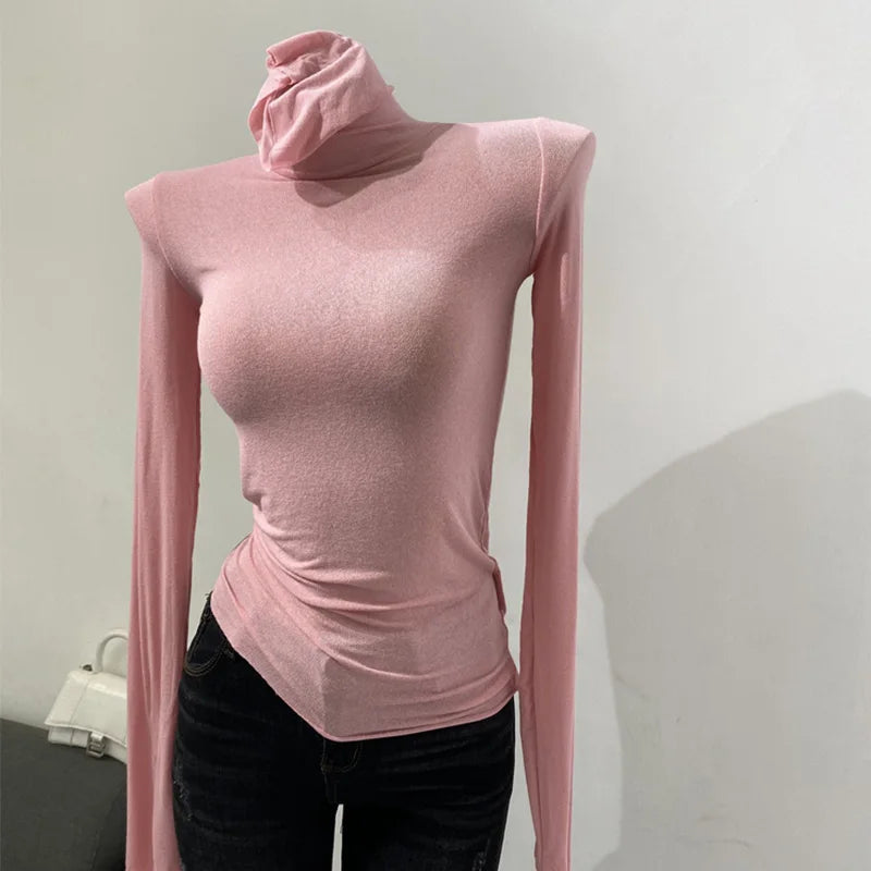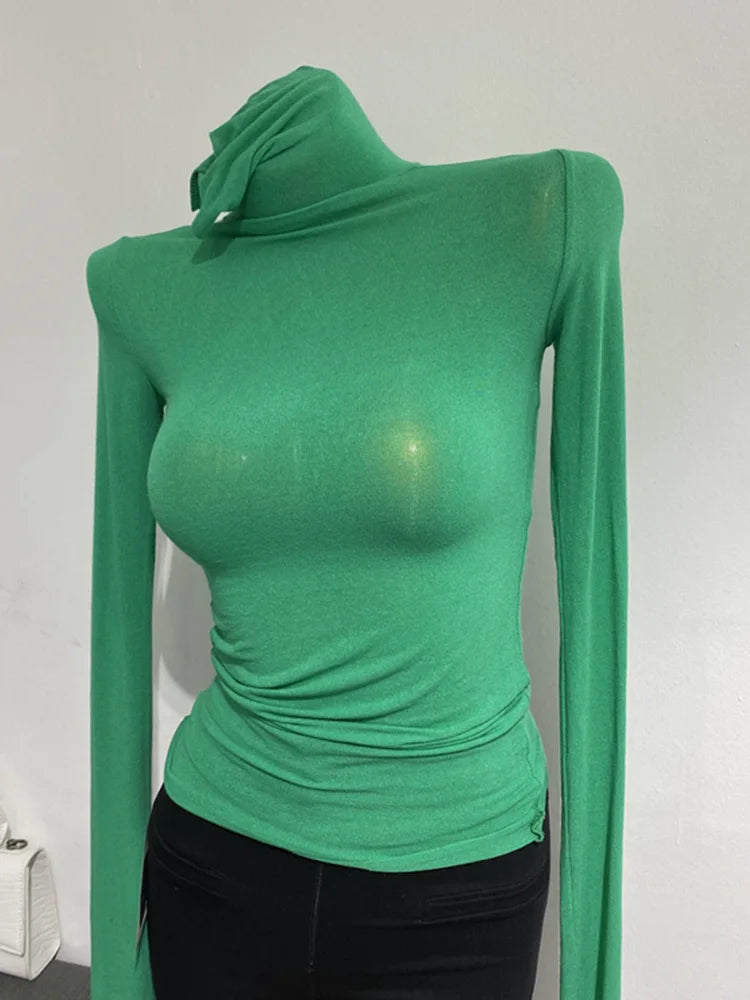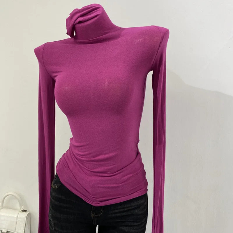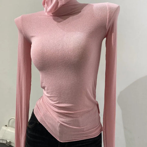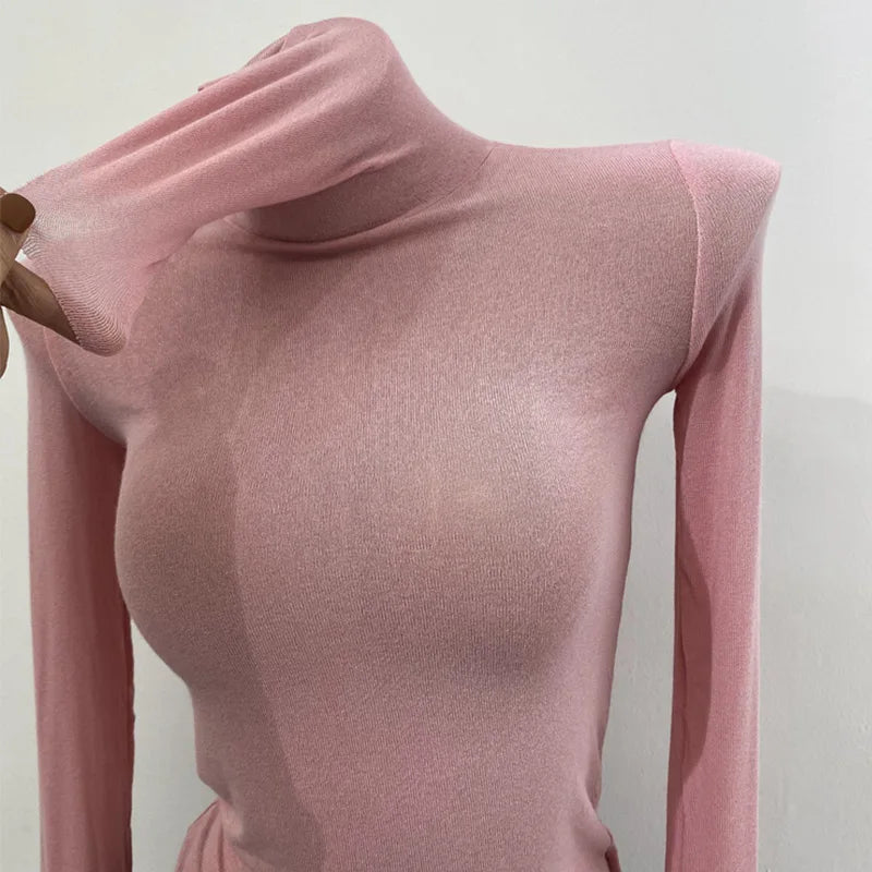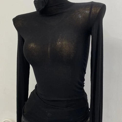 Thin Soft American Long Sleeve T-shirt High Stacked Neck Tight Perspective Bottom Shirt Women's Slim Fit Tops Sexy Streetwear