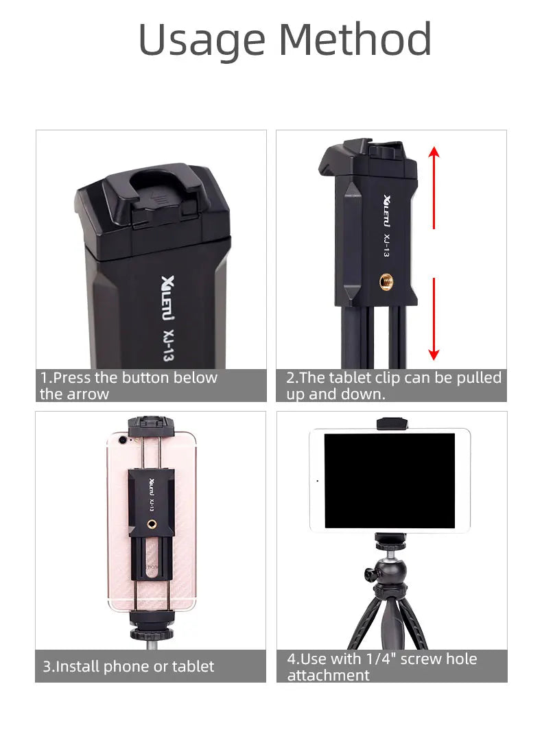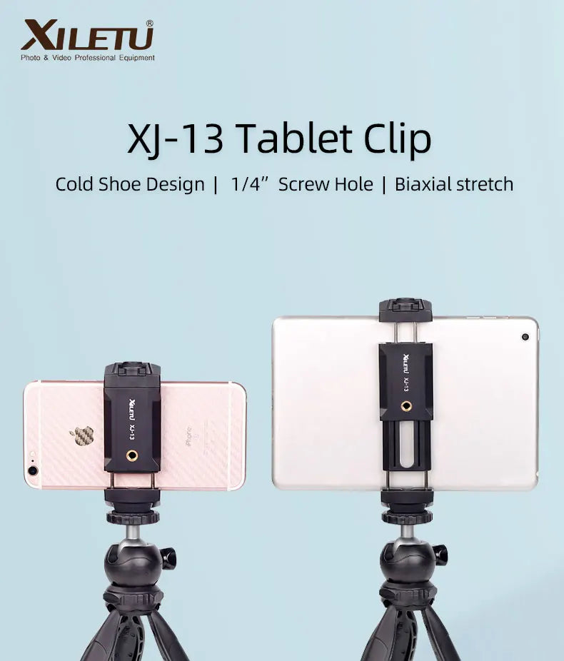 XILETU XJ13 Universal Tablet Clip Smartphone Holder Clip Stand w Mini Tripod Adjustable Bracket For Mobile Phones Ipro Tablets