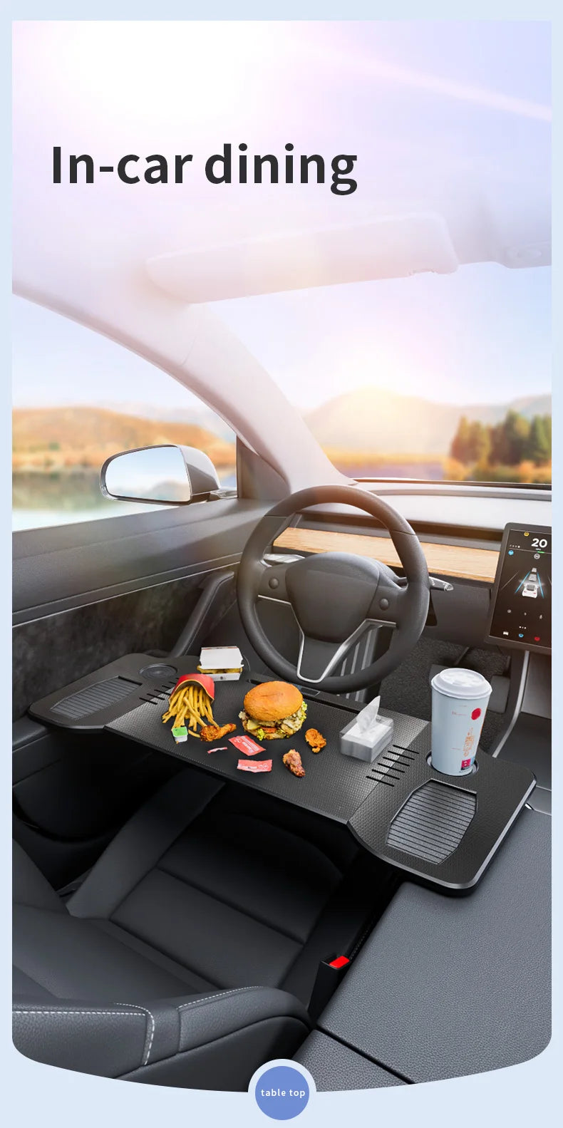 Desk Design for Tesla Model 3 / Y 2024 Car Steering Wheel Laptop Tray Food Desk Portable Office Table for Tesla