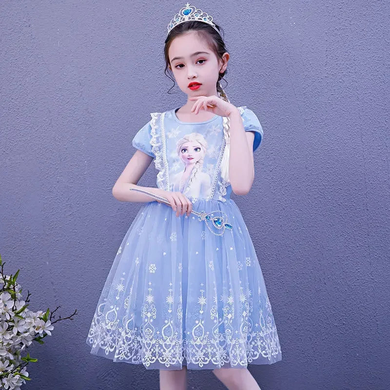 Girl's Cartoon Anime Frozen Elsa Princess Dress Baby Girl Cute Party Cospaly Costumes Halloween Carnival Ball Dresses 1-10 Years