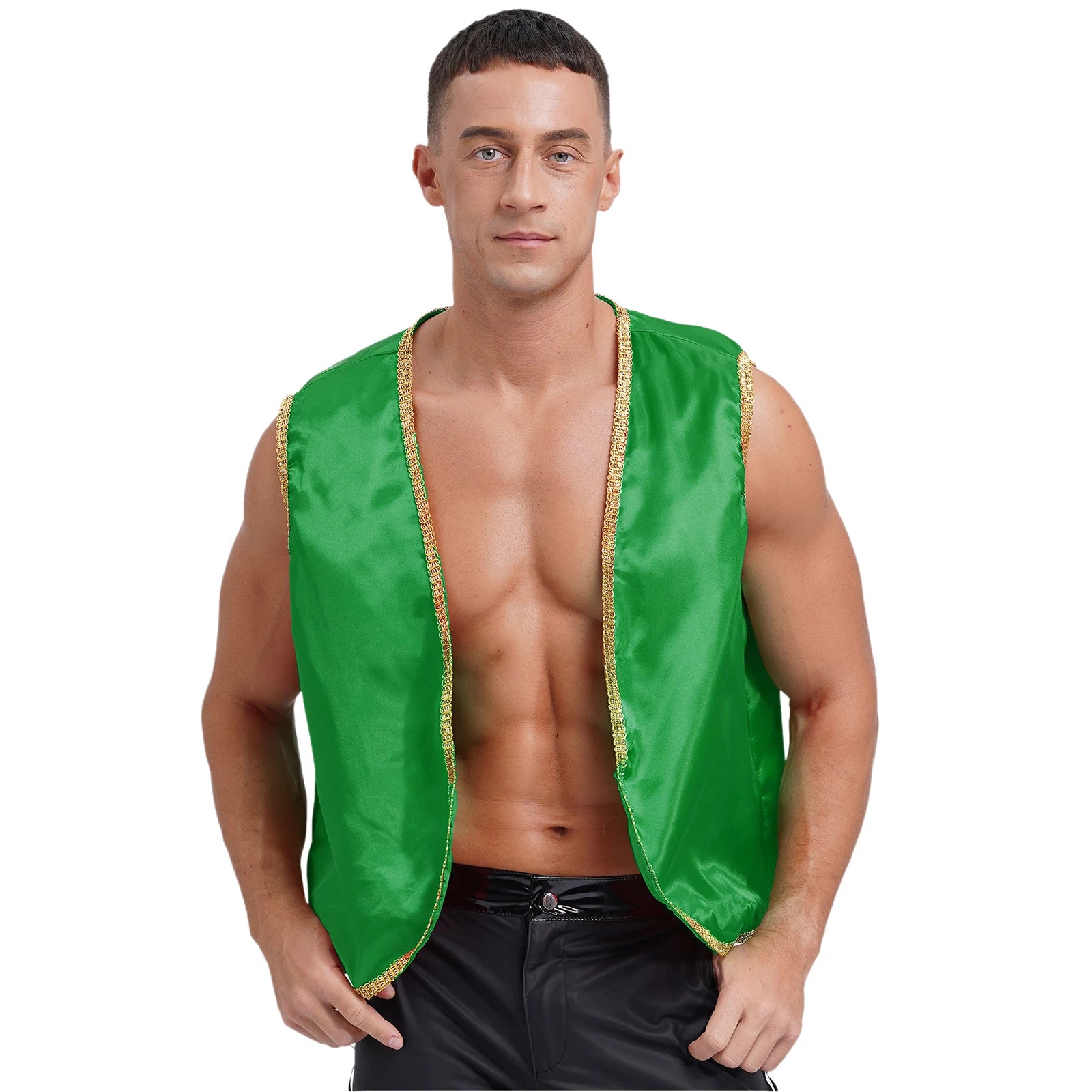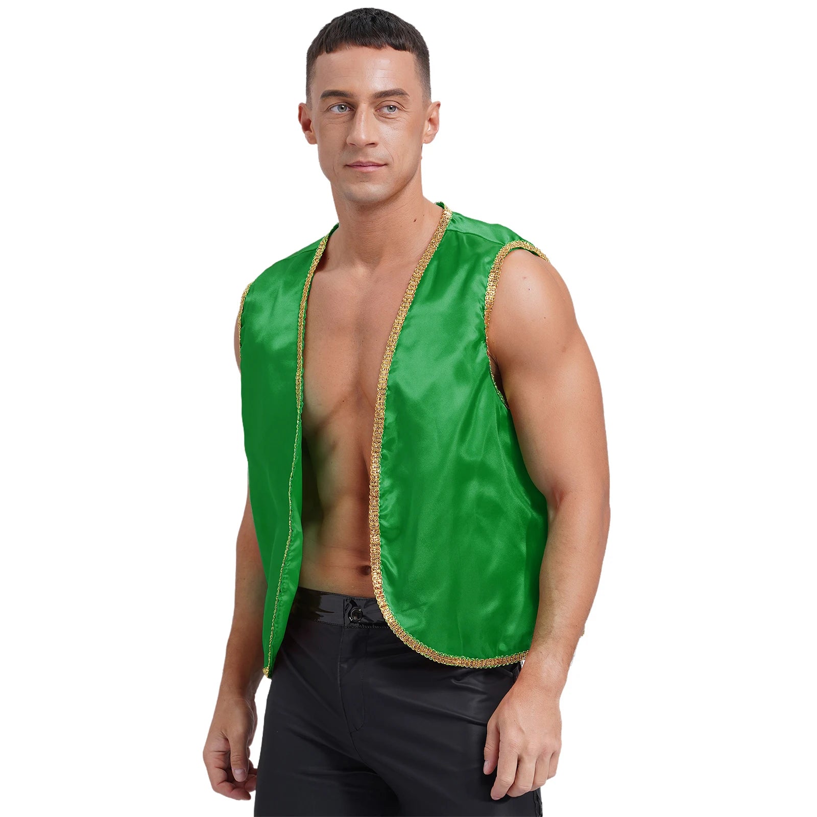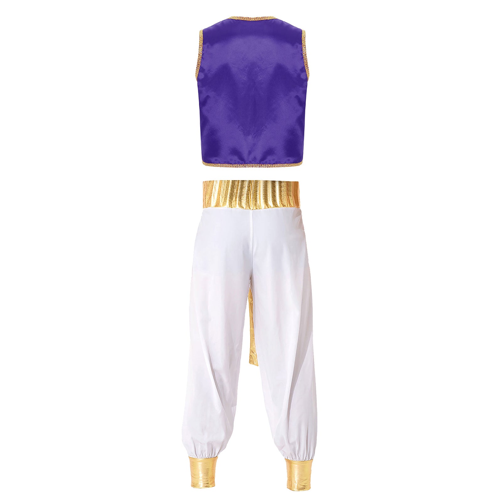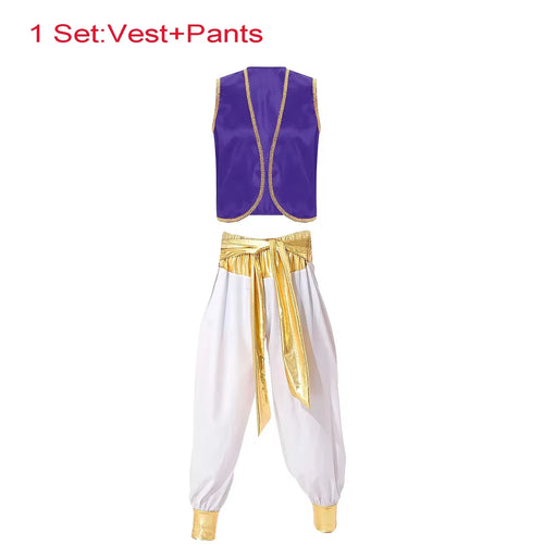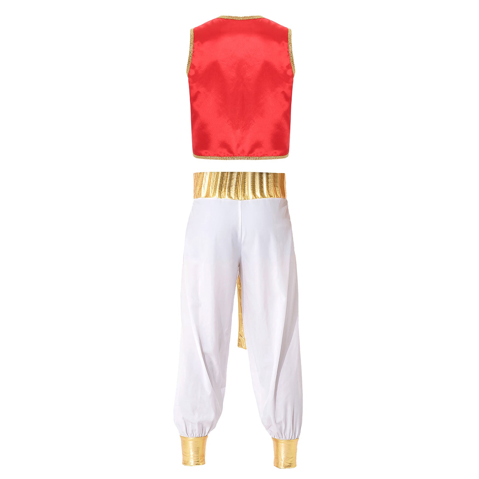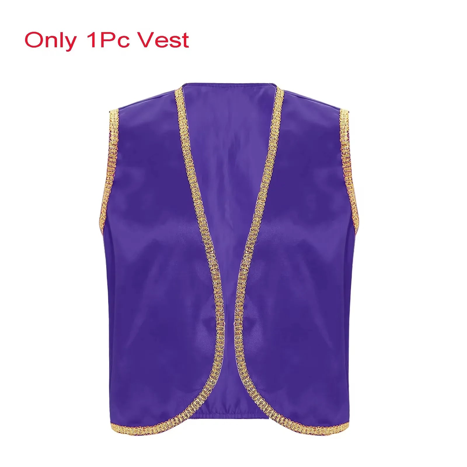 Mens Arab Prince Costume Persian Arabian Aladin Halloween Role Play Sleeveless Vest Waistcoat with Pant Suit Carnival Outfits