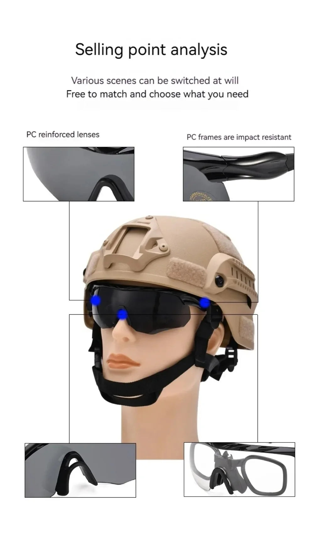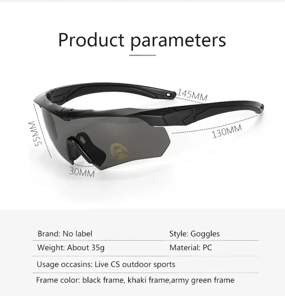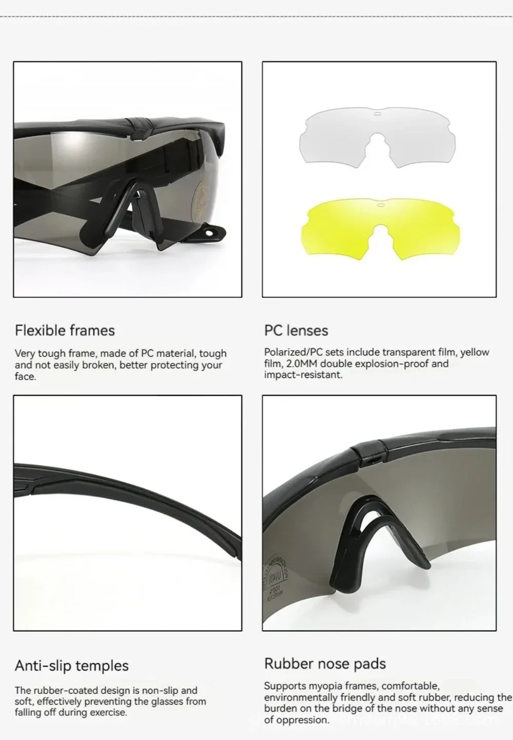 Military Tactical Goggles CS Airsoft Windproof Shooting Glasses HD 3 Lens Motocross Motorcycle Mountaineering Safe Glasses