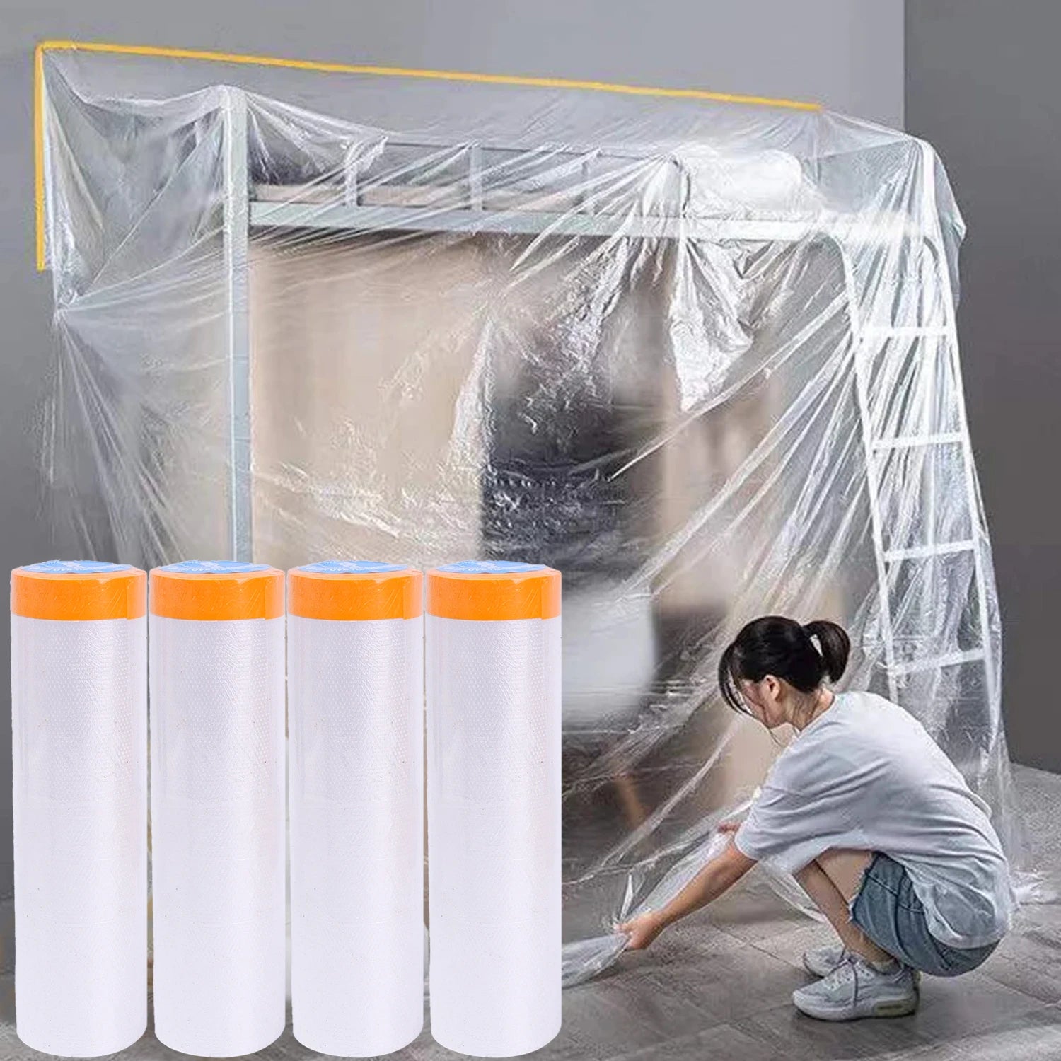 Pre-Taped Masking Film Plastic Painting Drop Cloth Sheeting Roll For Automotive Painting Furniture Dust-proof Protection Cover