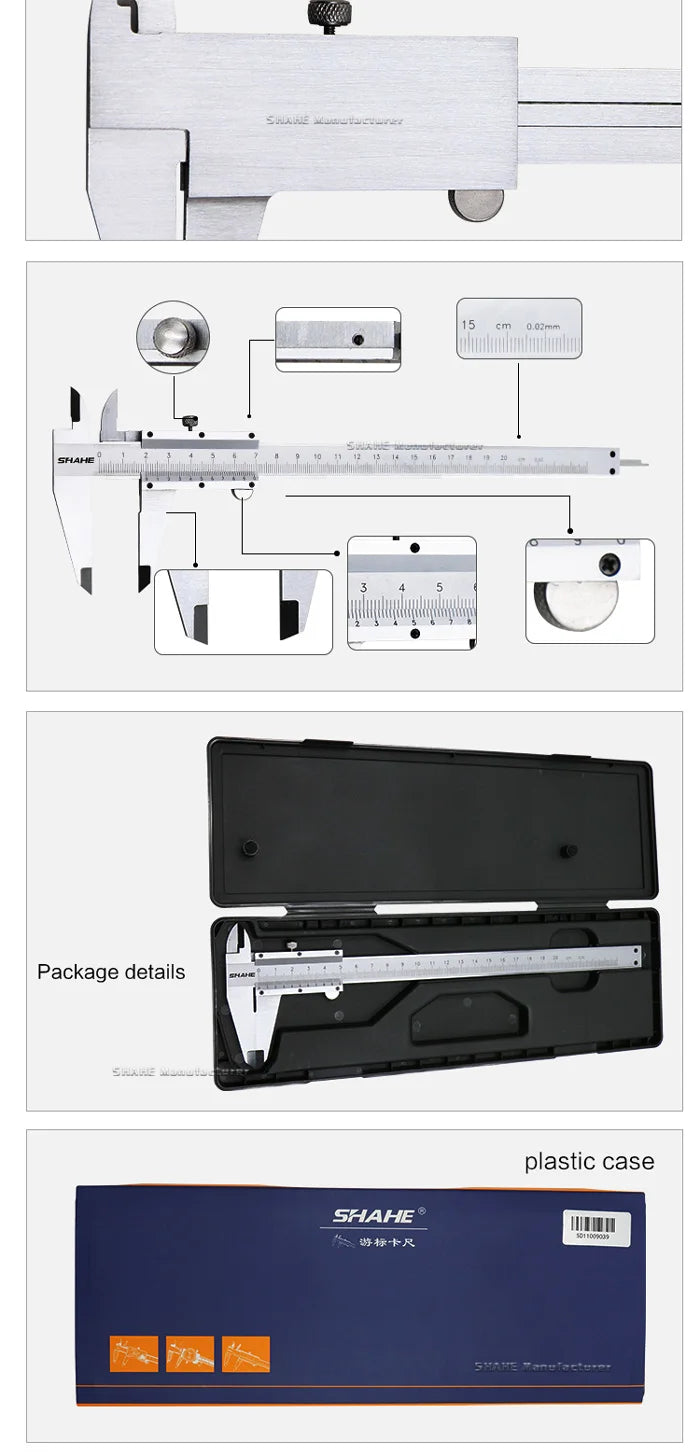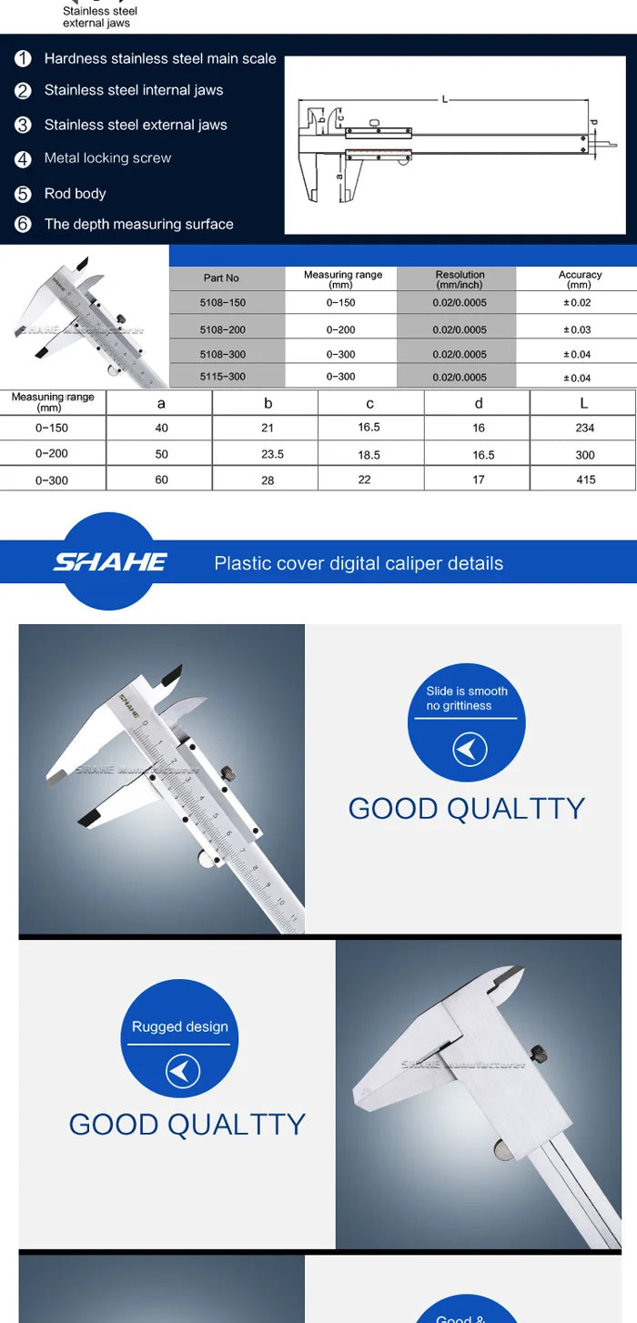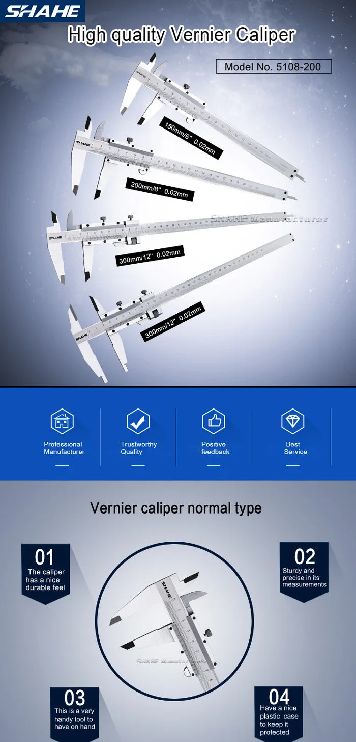 SHAHE 200 mm 0.02 mm Stainless Steel Vernier Caliper Measuring Tools Caliper Vernier 200 mm