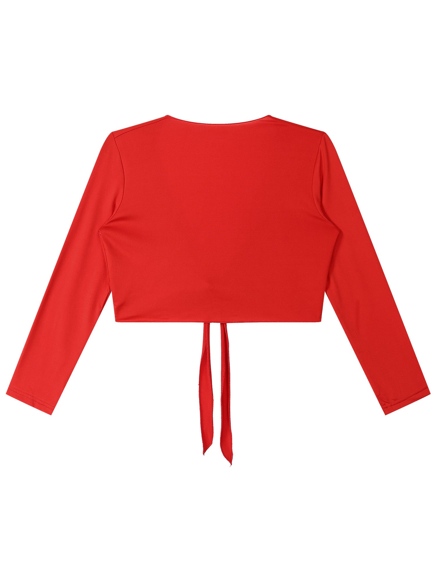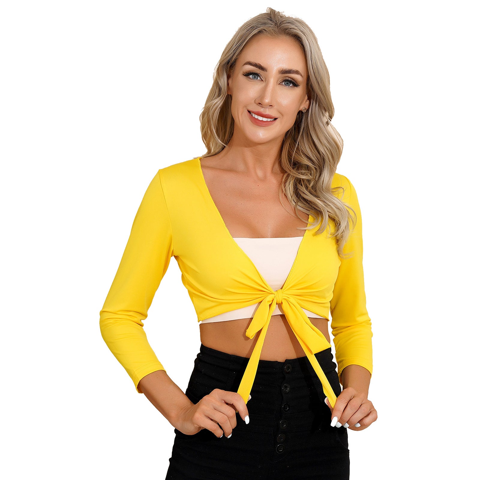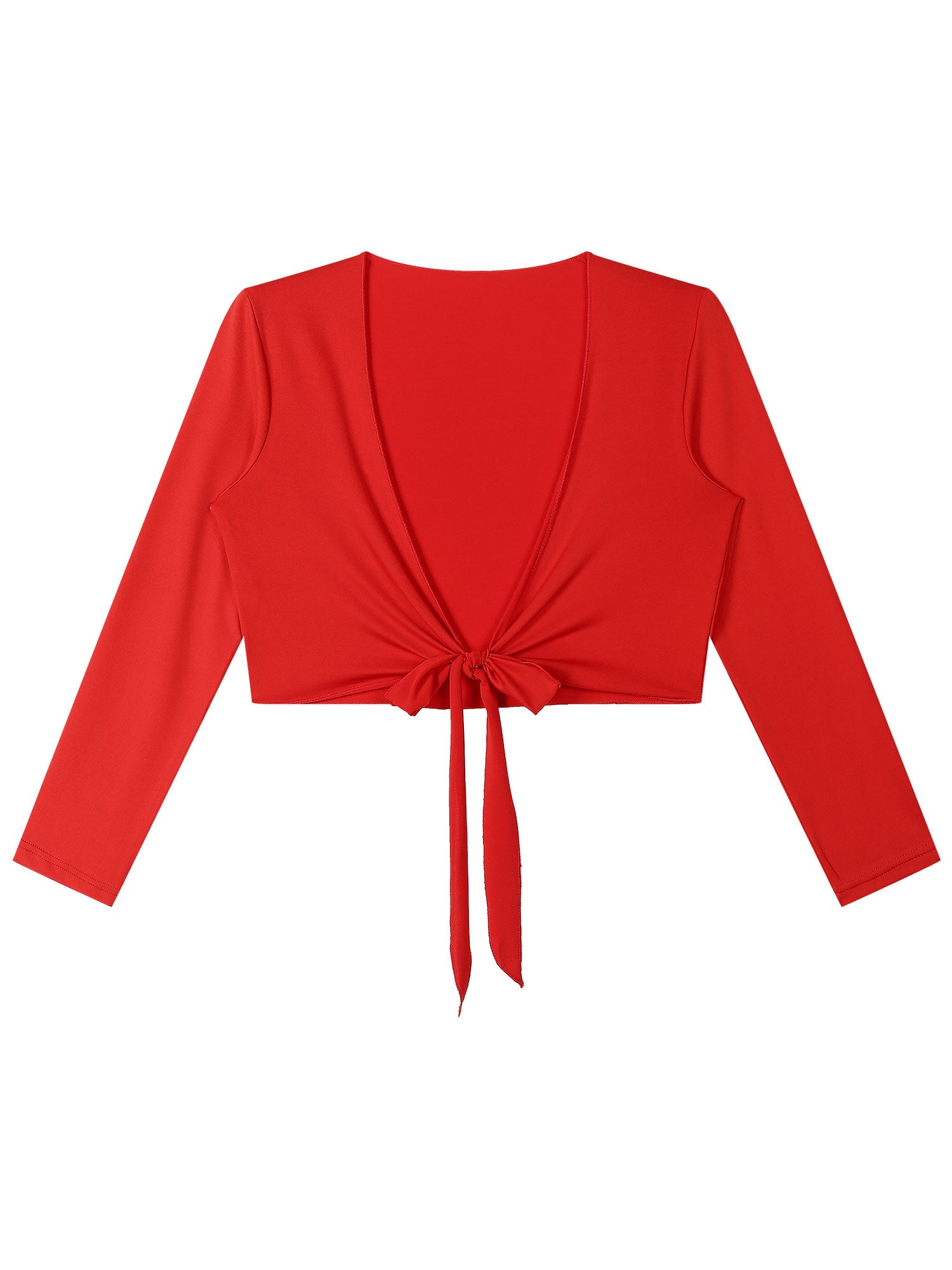 Women Belly Dance Tops Costume Wrap Shawl Wraps Self-Tie Long Sleeve Cropped Tops Solid Color Bolero Tops Long Sleeve Cardigan
