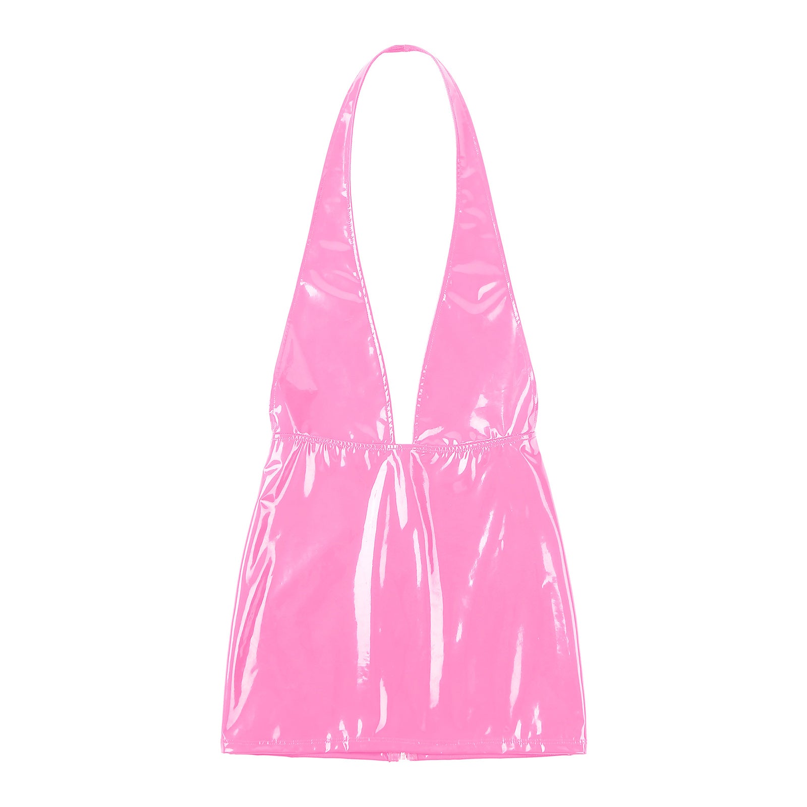 Women Wet Look PVC Leather Club Bodycon Dress Latex Rave Party Costume Hot Deep V Neck Backless Mini Dresses Carnival Clubwear